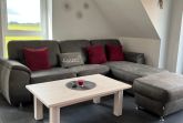 Im großzügigen Wohnbereich können Sie ein gemütliches L-Sofa und einen großen Fernseher vorfinden. Von hier haben Sie auch einen schönen Blick in südlicher Richtung über die Felder in der näheren Umgebung, den Sie auch vom möblierten West-Balkon mit Sonnenschirm aus genießen können.