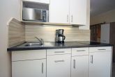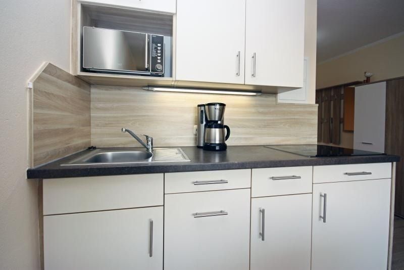 An den Wohnbereich grenzt die voll ausgestattete Küchenzeile, die alle Bequemlichkeiten einer modernen Küche bietet. Schnell sind Ihre Mahlzeiten vorbereitet, die Sie gemeinsam am angrenzenden Esstisch einnehmen können.