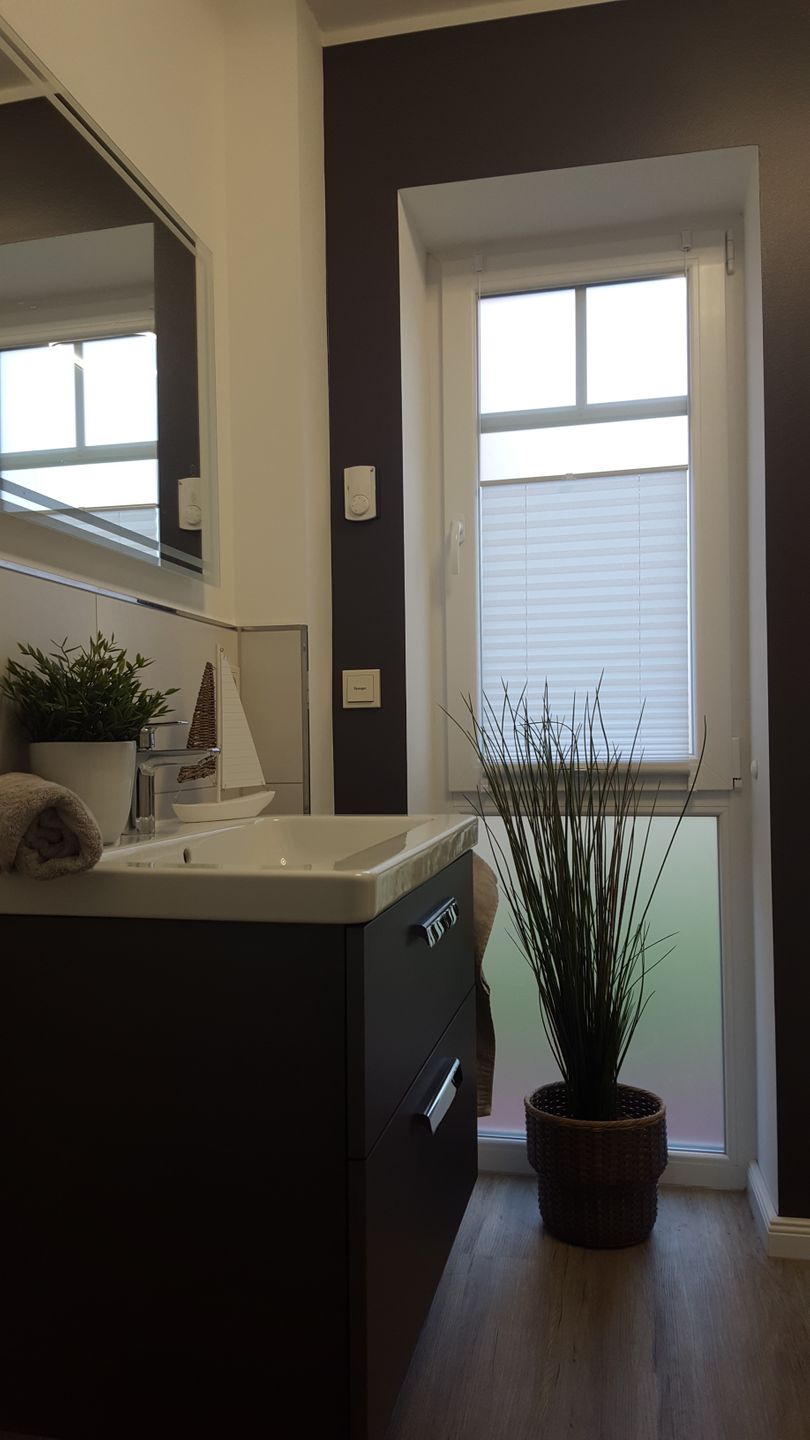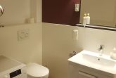 Das Badezimmer mit stimmungsvoller Ambientebeleuchtung verfügt selbstverständlich über eine Toilette und daneben über eine 1,00 m x 1,00 m große Duschtasse mit Handbrause und Über-Kopf-Regendusche für den Wohlfühleffekt. Als zusätzlicher Komfort ist die Fewo Unnerdack mit einem weiteren Gäste-WC (Toilette und Waschbecken) ausgestattet. Hier finden Sie auch einen kombinierten Waschtrockner zur freien Benutzung vor.