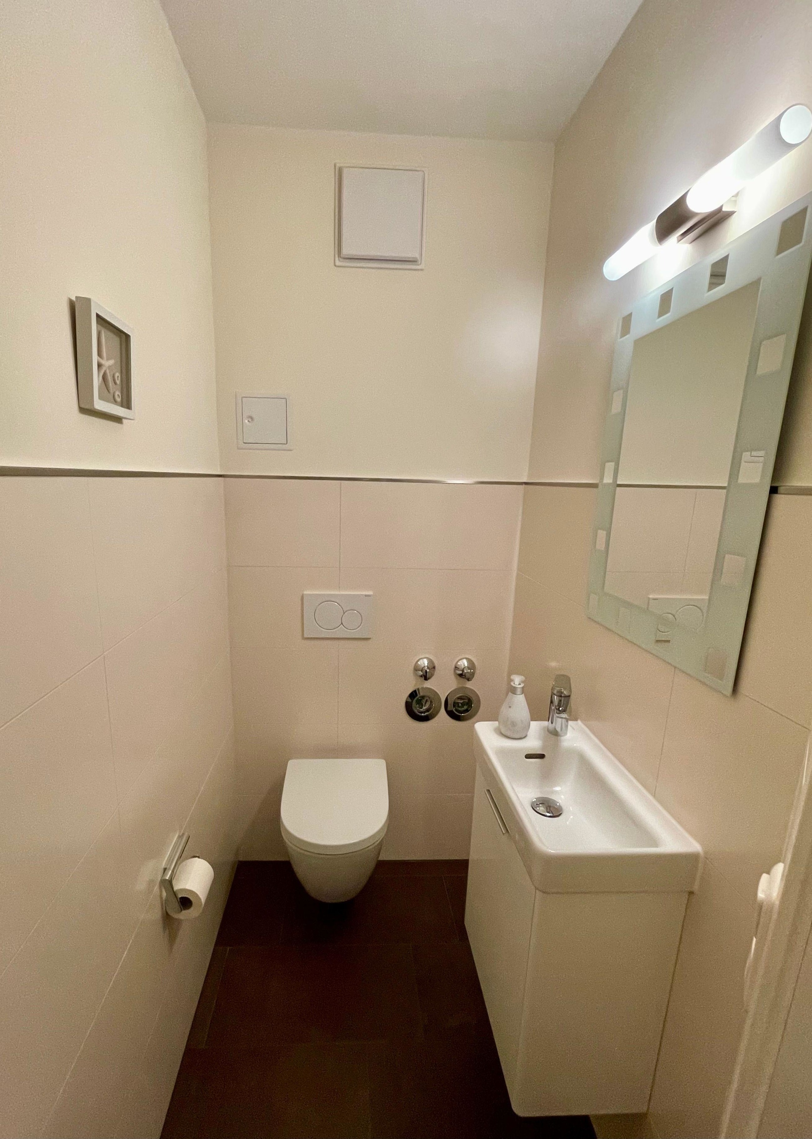 Das WC und ein Waschbecken befinden sich in einem separaten Raum.