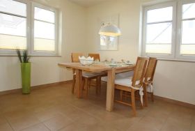 Am großzügigen Esstisch für max. 4 Personen können Sie gemeinsam Ihre Mahlzeiten einnehmen.