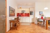 Der geschmackvoll gestaltete Essbereich grenzt an eine hochwertige und voll ausgestattete Küchenzeile, die Ihnen alle Bequemlichkeiten einer modernen Küche bietet.