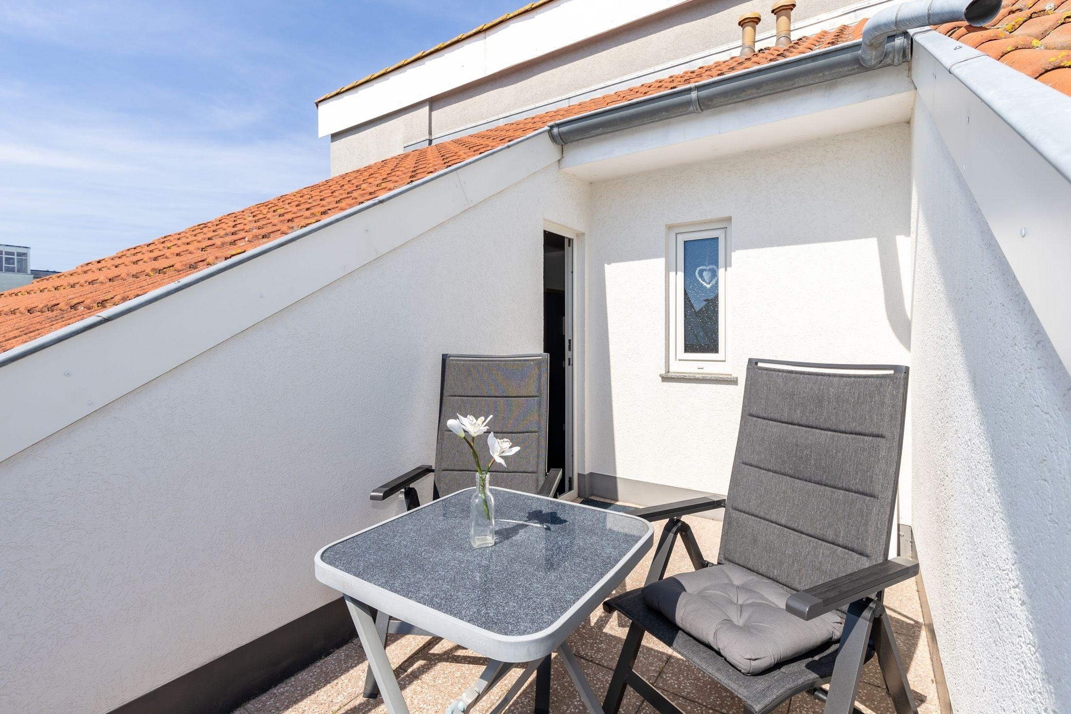 Sonne genießen, relaxen und am Abend einen ereignisreichen Tag gemütlich ausklingen lassen....das bietet Ihnen die kleine, windgeschützte Loggia, die über bequeme Möbel verfügt. Hier können Sie die Seele baumeln lassen, schnell ist der Alltagsstress vergessen!