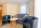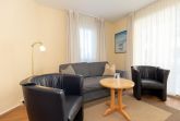 Der komfortable Wohnbereich ist mit einer Sofa- und Sesselecke eingerichtet. Das neue Schlafsofa bietet hervorragenden Sitzkomfort und kann mit wenigen Handgriffen in ein bequemes Bett verwandelt werden. Flachbildfernseher, HiFi-Anlage, Bücher und eine Spielesammlung stehen für Sie als Unterhaltungsmöglichkeiten zur Verfügung.