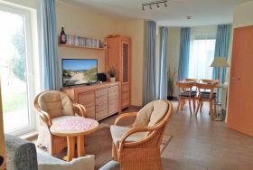 An Ihre Wohnung grenzt eine windgeschützte und nach Süden ausgerichtete Terrasse, die Sie direkt von Ihrem Wohnzimmer aus betreten können. Hier können Sie in vollen Zügen die Sonne genießen und auf bequemen Gartenmöbeln einen ereignisreichen Tag gemeinsam ausklingen lassen.