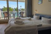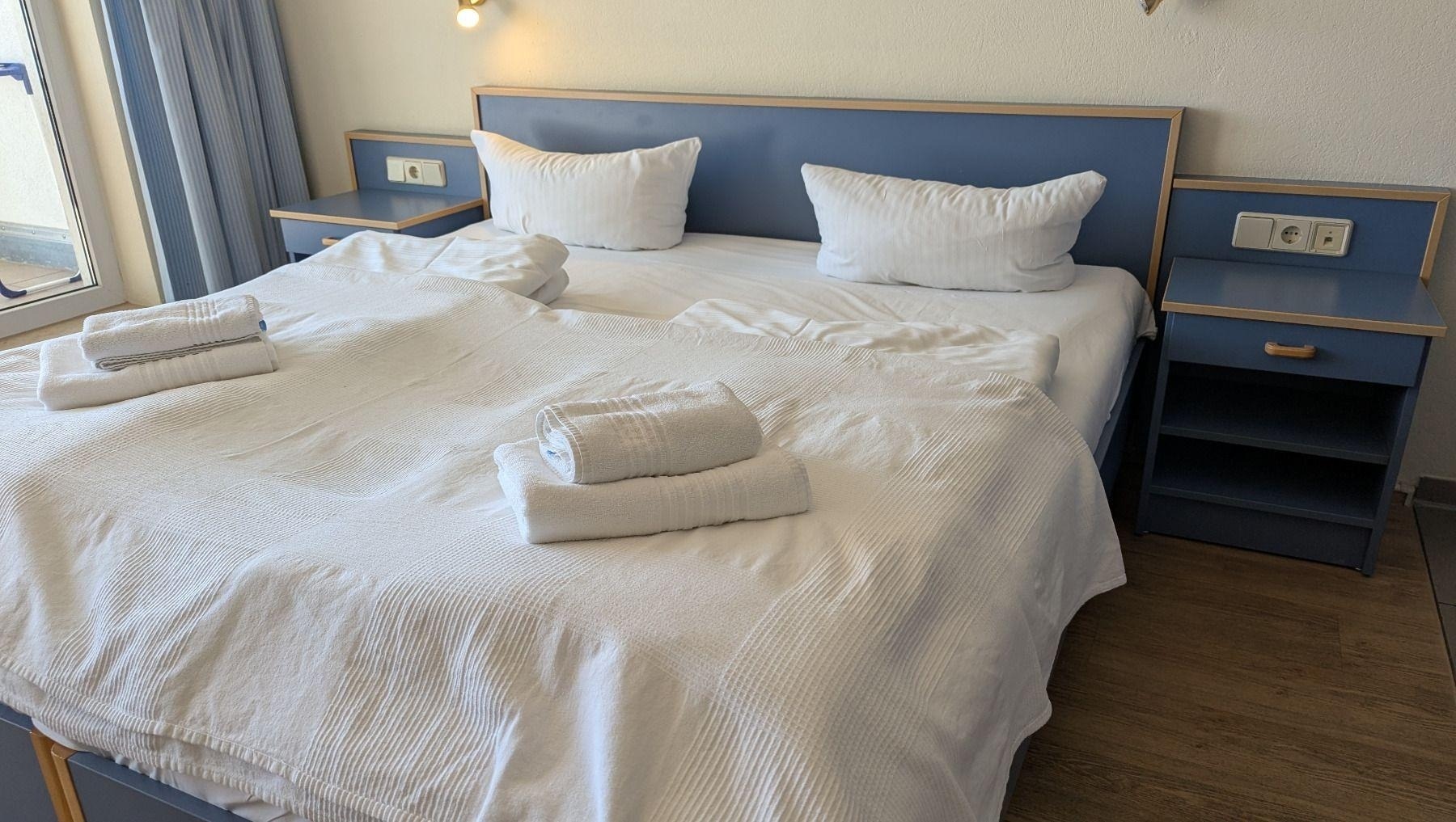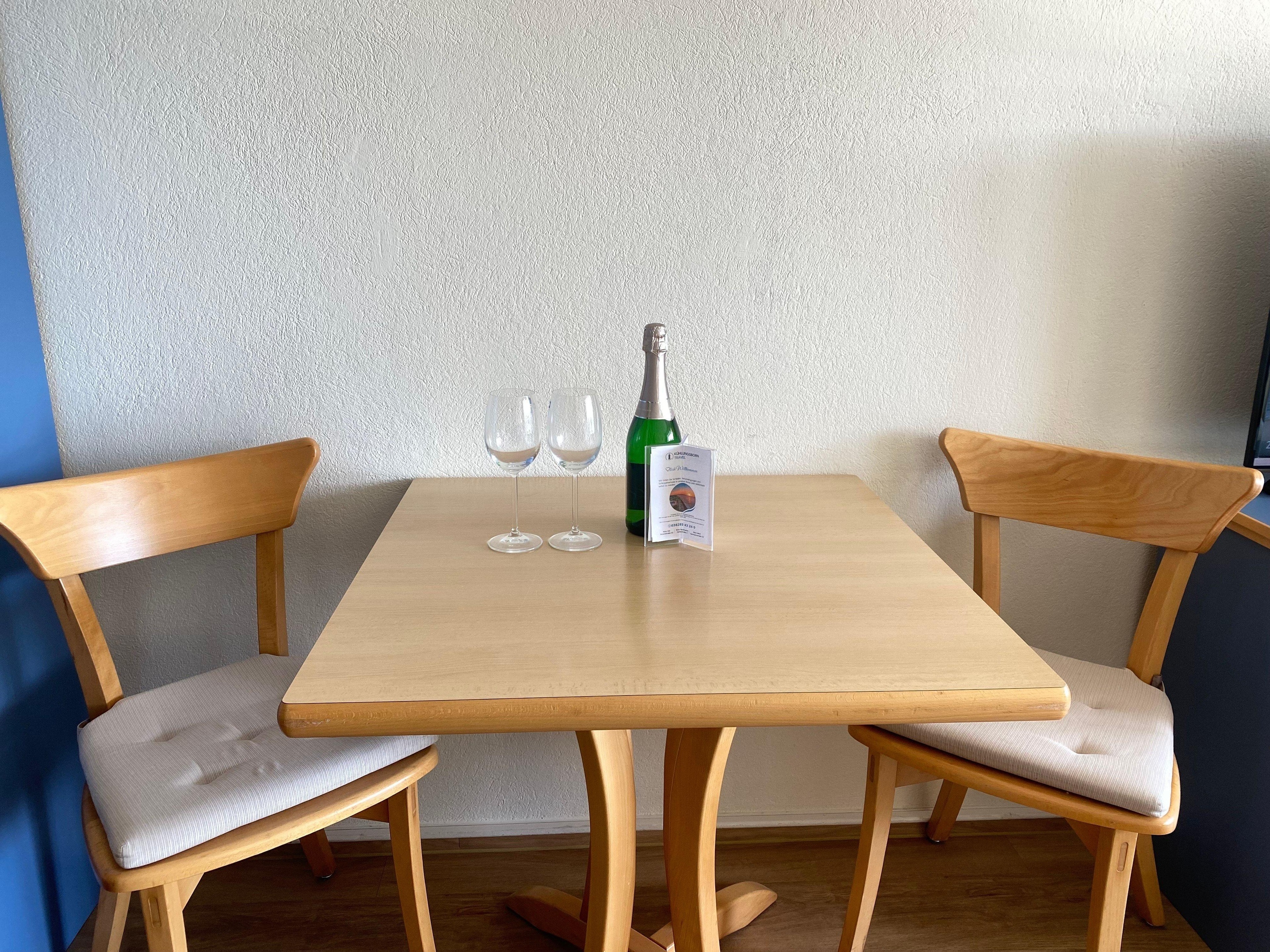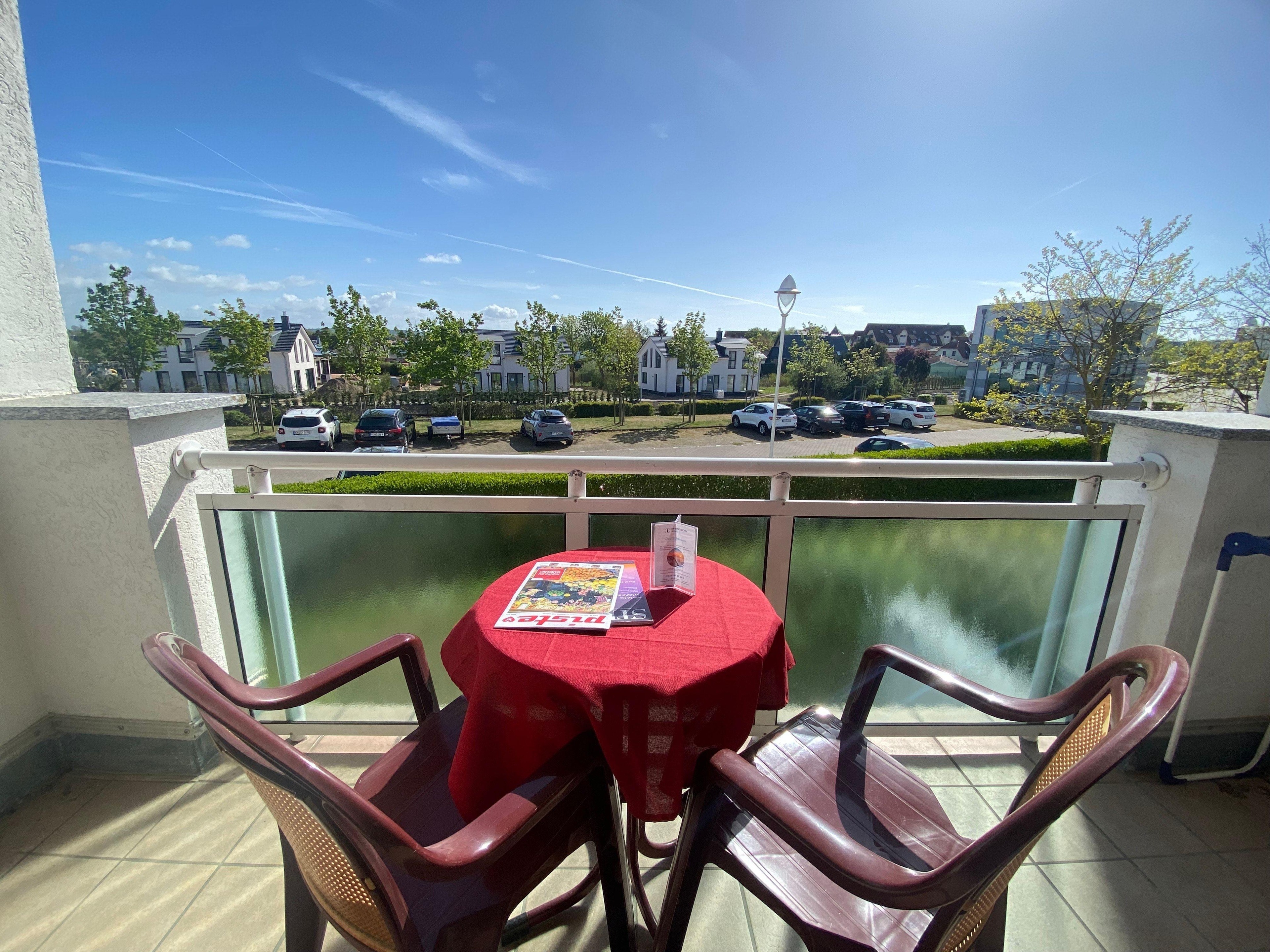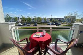 An Ihre Wohnung grenzt ein großer Südbalkon, der mit hübschen Balkonmöbeln ausgestattet ist. Hier können Sie Sonne satt genießen und am Abend bei einem leckeren Getränk einen erlebnisreichen Tag gemütlich ausklingen lassen. So starten Sie ausgeruht und voller Tatendrang in einen weiteren aufregenden Urlaubstag.