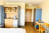 An den Wohn-/Schlafbereich grenzt die kleine, voll ausgestattete Küchenzeile, in der Sie schnell Ihre Lieblingsmahlzeit zaubern können. Es ist an alles gedacht.