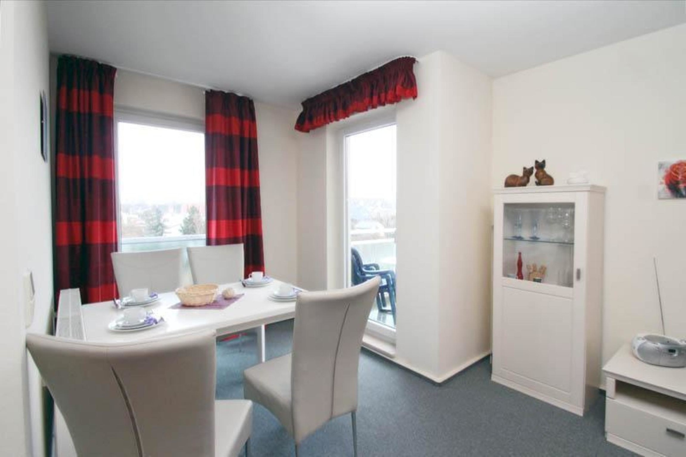An Ihre Wohnung grenzt ein Balkon zur Südseite, den Sie direkt von Ihrem Wohnzimmer aus betreten können. Bequeme Balkonmöbel laden zum Verweilen in der Sonne ein, in den Abendstunden können Sie einen ereignisreichen Tag gemeinsam bei einem leckeren Getränk ausklingen lassen. Von hier aus können Sie die nostalgische Dampfeisenbahn Molli beobachten und sich inspirieren lassen.