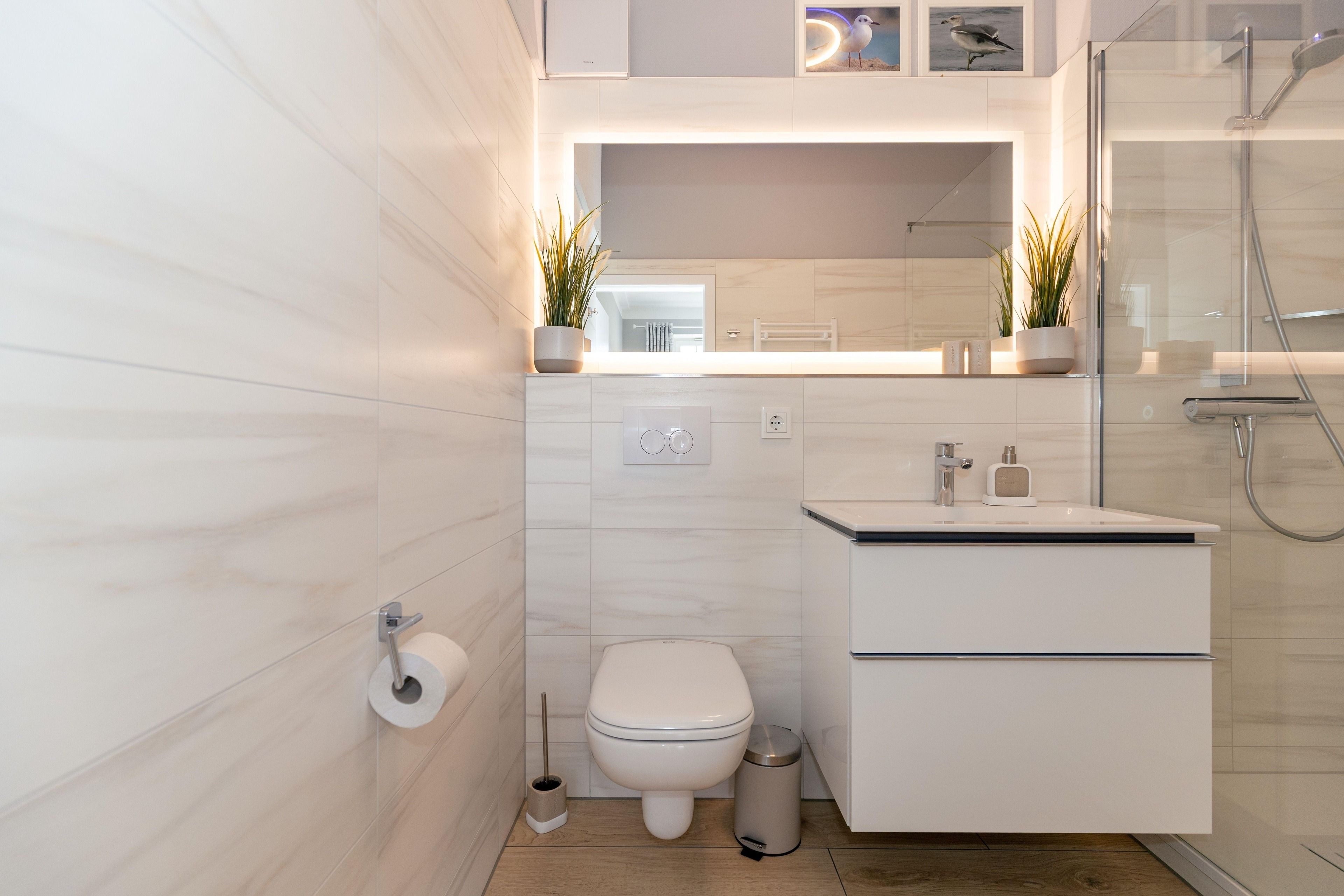 Das Badzimmer verfügt über eine Dusche, ein WC, ein Waschbecken, Föhn sowie diverse Ablagemöglichkeiten für Ihre Badutensilien.