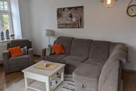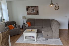 Die hell und freundlich anmutende Ferienwohnung ist durchgängig mit Laminat verlegt.