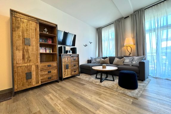 Das Wohnzimmer ist mit Satelliten-TV, gemütlicher Couch zum ausziehen, sowie einem Hocker ausgestattet. Hier können Sie einen ereignisreichen Tag bei einem leckeren Getränk gemütlich ausklingen lassen.