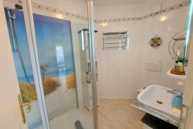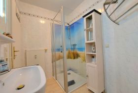 Im Bad erwartet sie zum entspannen eine schöne Dusche. Auch ihr Auto hat einen eigenen PKW-Stellplatz auf dem Hof.