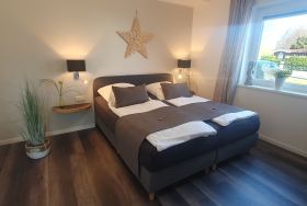 Beide Schlafzimmer befinden sich nebeneinander und sind voll ausgestattet mit je 1 hochwertigen Boxspringbett (180 x 200 cm) bzw. mit einem hochwertigen Boxspring in 160 x 200 cm mit je 1 Flat TV in beiden Schlafzimmern, (1x mit DVD-Spieler). Schlafzimmerfenster mit Verdunklungsplissee (absolute Dunkelheit!) sowie Mückenschutz. 1 Safe. Design-Holzboden-Belag. Bügelbrett, Bügeleisen vorh.