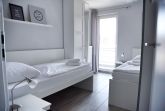 Das Wohnzimmer bietet Ihnen einen Esstisch mit sechs Stühlen, ein ausziehbares Schlafsofa mit einem Schlafplatz für zwei Personen und einen Sessel. Für die Übernachtungsgäste des Wohnzimmers steht Ihnen ein separater Kleiderschrank zur Verfügung. Multimedial steht Ihnen ein großer Flachbildfernseher zur Verfügung. Ihre Ferienwohnung hat einen Kabelanschluss. Auch einige Gesellschaftsspiele warten hier schon auf Sie. In Ihrem großen Schlafzimmer befindet sich ein Doppelbett mit höhenverstellbaren Lattenrosten. Nachtische, Leselampen und Garderoben möchten hier von Ihnen genutzt werden. Der große Schrank wird Ihnen gute Dienste leisten. Im kleinen Schlafzimmer sind zwei für Sie vorhanden. Die Lattenroste sind auch hier höhenverstellbar. Die beiden Kleiderschränke, die Garderoben und die Nachttische mit den dazugehörigen Leselampen werden Ihnen genügend Stauraum für Ihr Gepäck bieten. Ihre hochwertige Sterneküche ist für Sie voll ausgestattet. Bestandteile sind unter anderem ein Cerankochfeld, ein Backofen, eine Kaffeemaschine, eine Mikrowelle, viel Geschirr, ein Geschirrspüler, eine große Kühl- und Gefrierkombination und weiteres Equipment. Das Badezimmer hält eine Dusche mit Duschkabine, Ablageflächen und einen Fön für Sie bereit. Im Flur finden Sie eine Garderobe, einen großen Spiegel und Reinigungsgeräte vor. Das Appartement Nock liegt im ersten Obergeschoss des Hauses Regatta, im Eingang 4. In unmittelbarer Nähe dieses Appartements befinden sich weiter Ferienappartements unserer Gesellschaft. Eine gemeinsame Anmietung ist hier sehr gut möglich.
