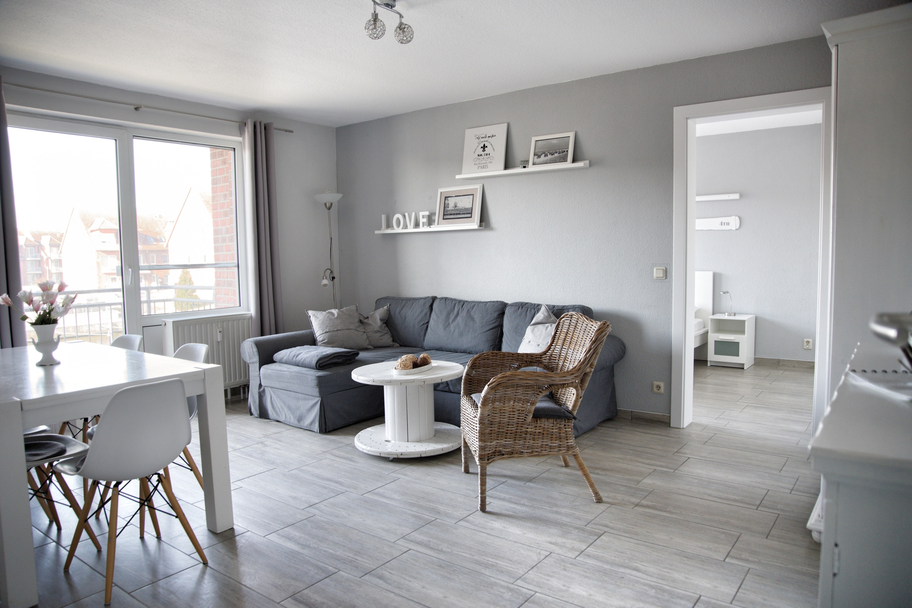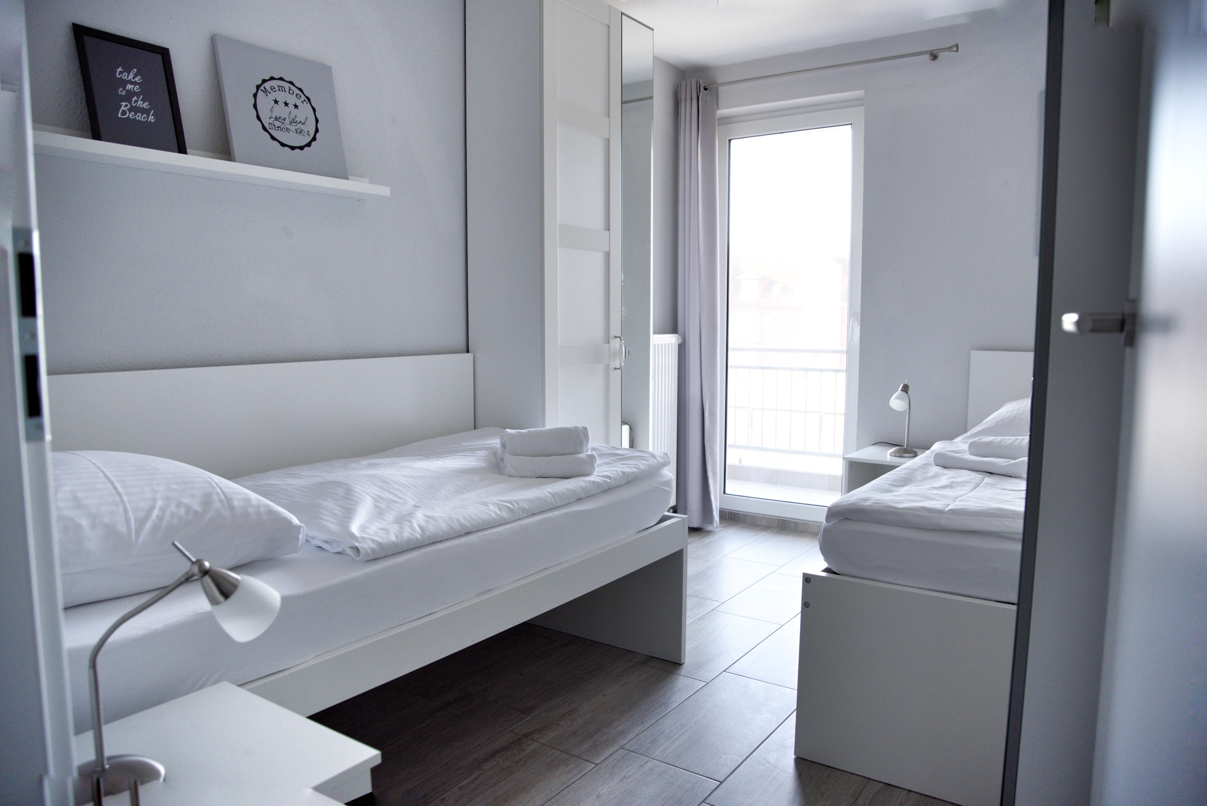 Bei der Ferienwohnung Nock handelt es sich um eine hochwertig eingerichtete, maritim geprägte Nichtraucherwohnung, die sich auf 61 Quadratmetern erstreckt. Aus jedem Fenster und auch von den beiden südlich ausgerichteten Balkonen aus blicken Sie direkt auf die Hafenanlagen der Marina. Auf den beiden Balkonen stehen Ihnen Gartenstühle, ein Tisch und ein Sonnenschirm zur Verfügung.
