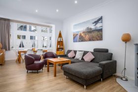 Dieses freundliche Apartment bietet auf 3 Zimmern Platz für bis zu 7 Personen. Neben dem Wohnbereich mit Esstisch, der Küche und dem Bad, gibt es zwei Schlafzimmer sowie ein Gästebad.