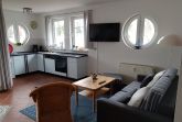 Im Wohnzimmer in einer Nische befindet sich die voll ausgestattet Küche. Ein großer Esstisch lädt zum verweilen ein. Die gemützliche Sitzecke bietet reichlich Platz zum Entspannen. Das Sofa kann man zusätzlich zum Doppelbett herrichten. Vom Wohnzimmer aus, betritt man den großen überdachten Balkon. Das geräumige Bad mit Fenster ist mit einer Dusche ausgestattet.