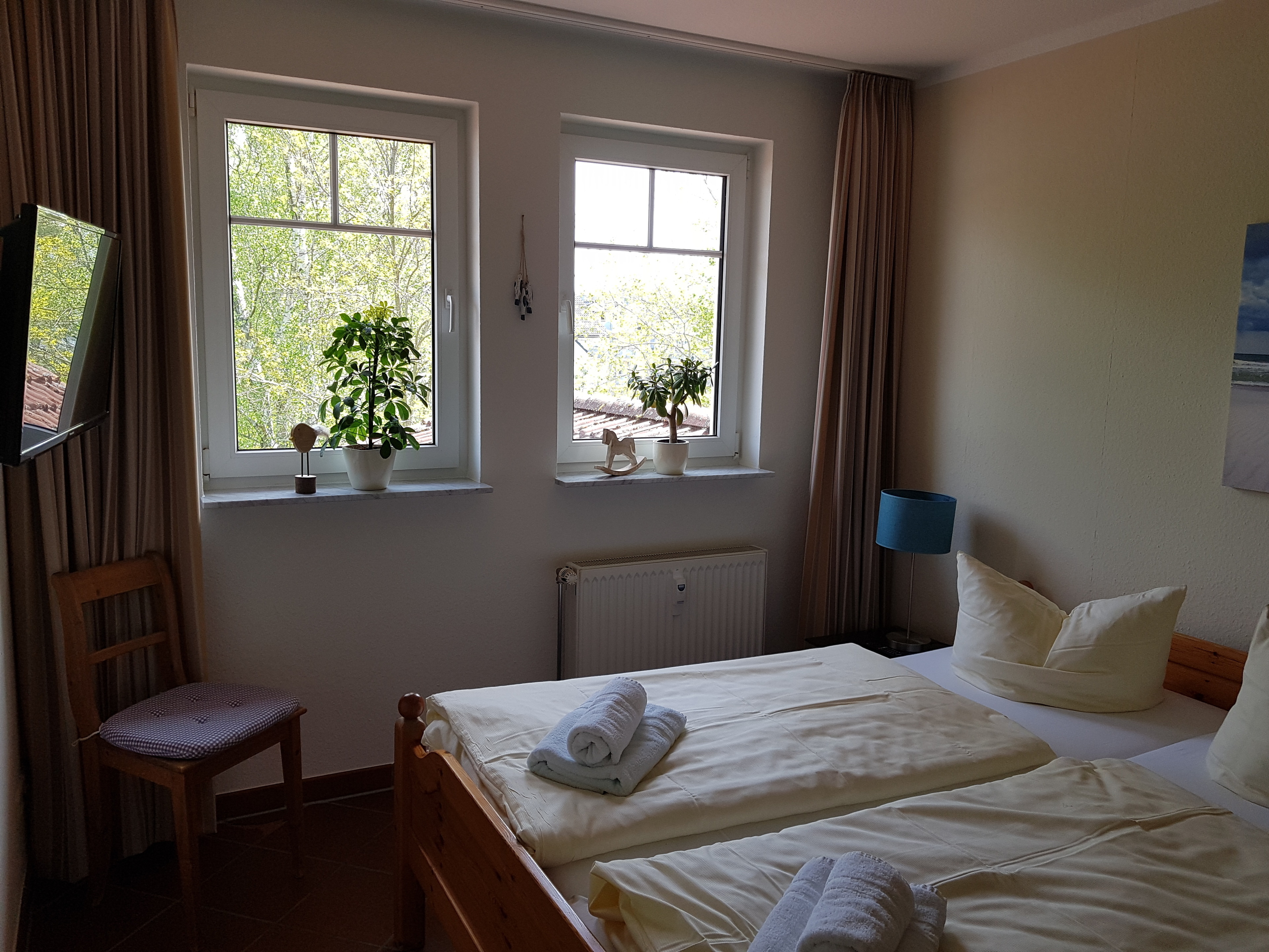 Sie haben die Option bei uns ein Wäschepaket für 20,00 EUR pro Pers. dazu zu buchen. Dieses umfasst neben bezogene Betten, ein großes Badetuch und ein kleines Handtuch sowie pro Badezimmer ein Duschvorleger und zwei Geschirrtücher.