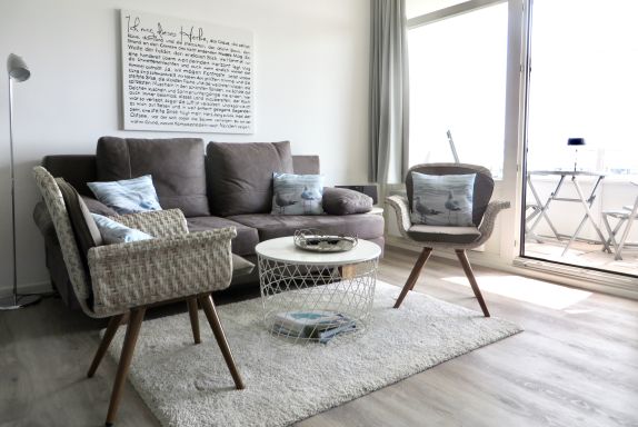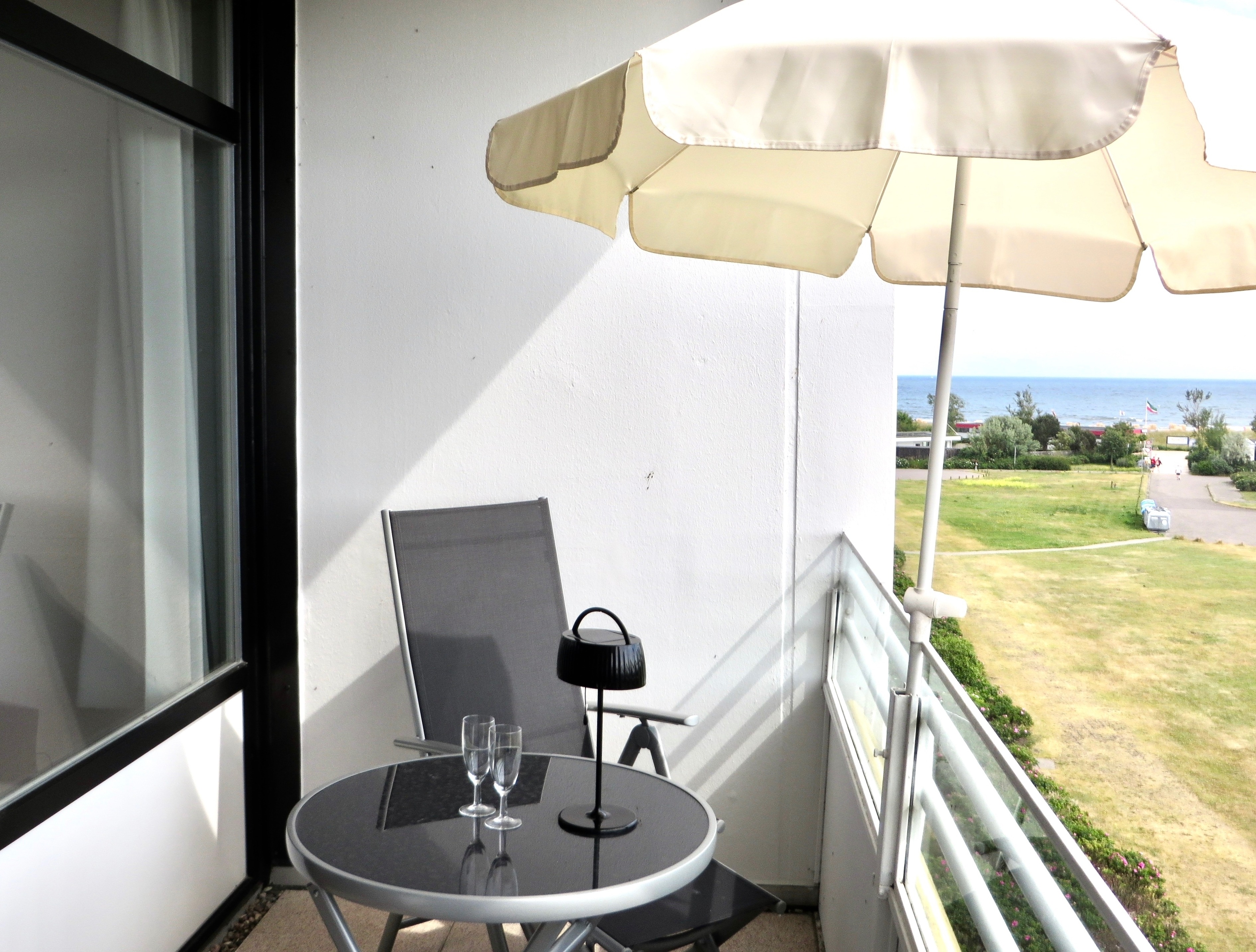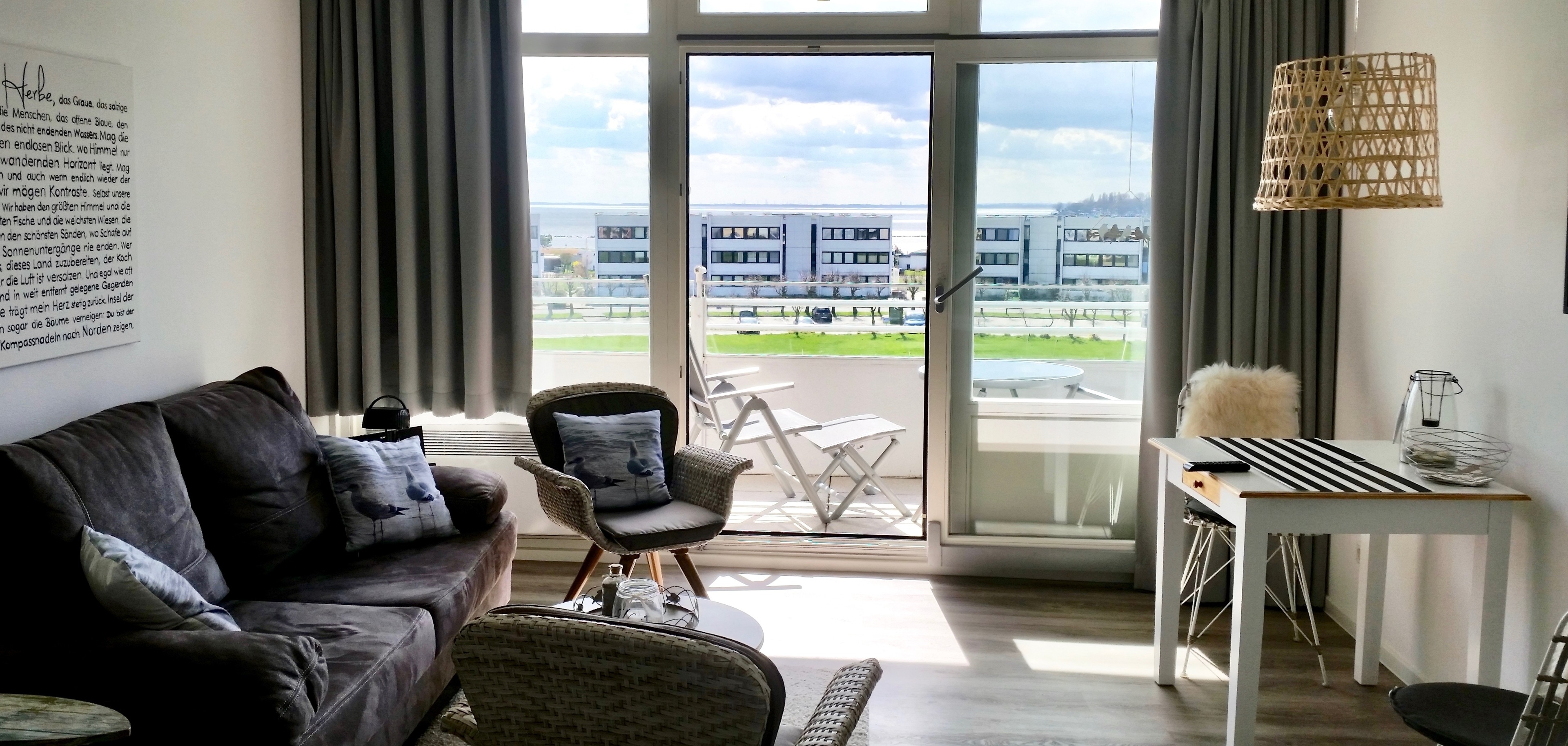 Die Strandbude ist mit einer stylischen Küchenzeile mit Geschirrspüler ausgestattet, einem kleinen, aber feinen Bad mit Dusche, einem gemütlichen Boxspringbett, Schlafsofa, Essecke, TV und Balkon mit Blick aufs Meer. Durch die große Fensterfront mit Meerblick wirkt die Strandbude besonders hell, freundlich und gemütlich. Wer möchte, nimmt den Fahrstuhl in die 3. Etage des Mehrfamilienhauses, um in der Strandbude zu stranden...
