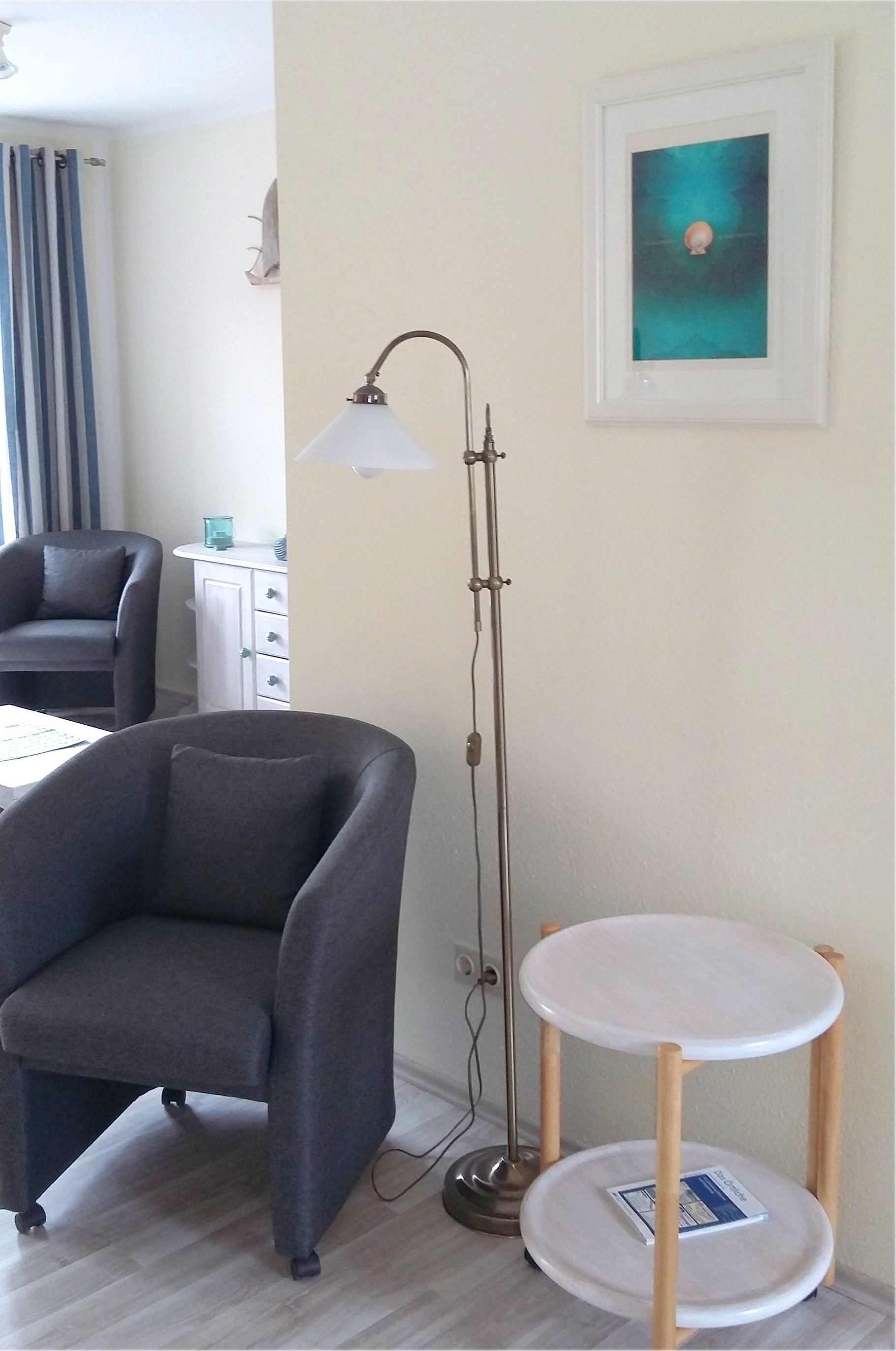 Liebevoll renoviertes (2018), helles Ferienapartment im 2. OG. über zwei Ebenen mit Meerblick, nur ca. 50 m vom Strand entfernt. Das großzügige lichtvolle Schlafzimmer im Dachgeschoss ist über eine steile Wohntreppe erreichbar. Der sonnige Balkon befindet sich auf der Südseite. Auch hier ist durch den geschaffenen offenen Wohnraum ein Blick auf die Ostsee möglich.