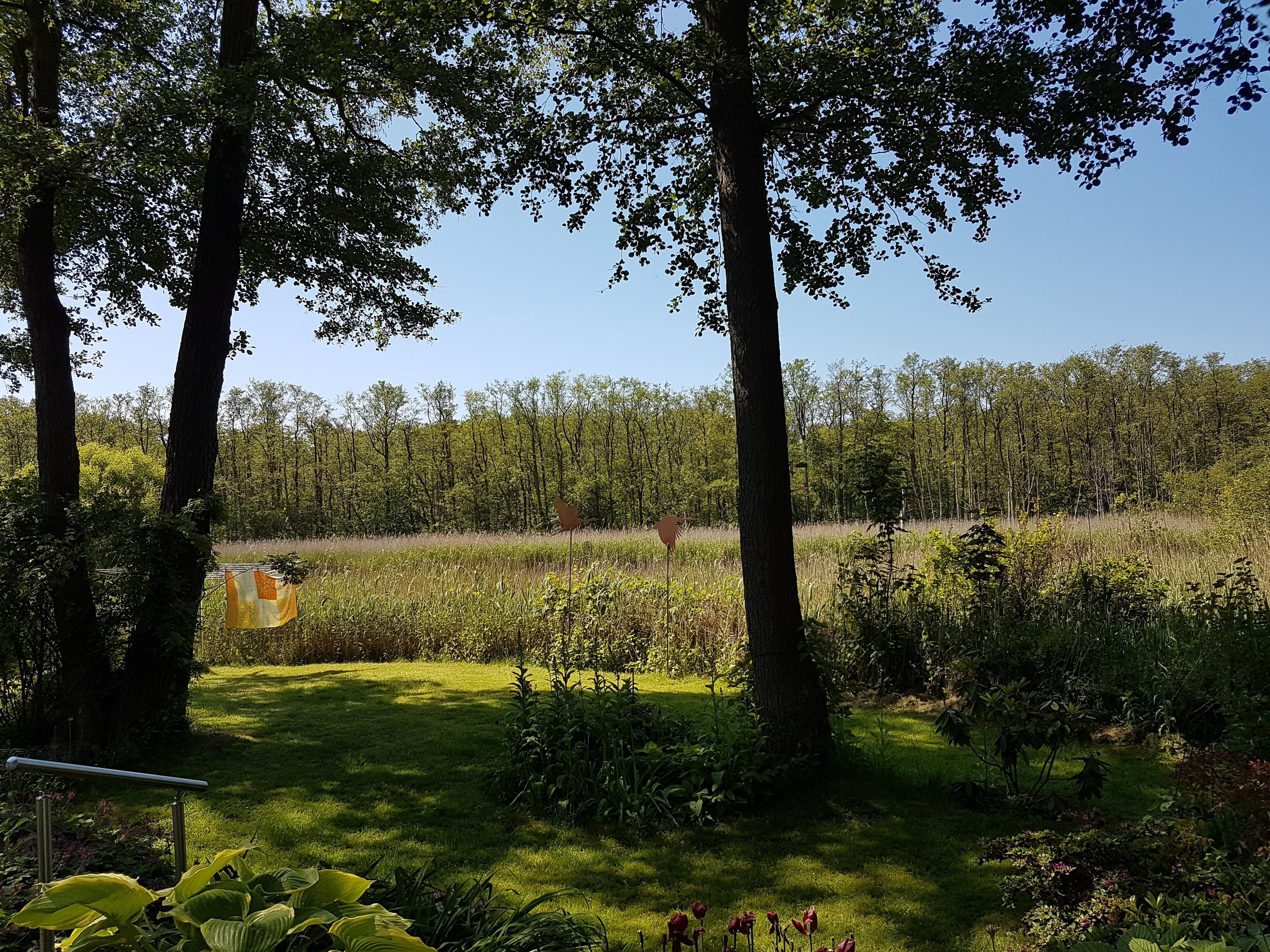 Die alten Bauernhausmöbel von anno 1848 verbreiten ihren besonderen Charme im frisch renovierten Wohn- Esszimmer in Verbindung modernem Sat-TV und Stereo-Anlage. Von hier gelangen Sie auf die Terrasse in Süd-West-Lage mit dem herrlichen Blick auf den alten Prerow Strom und den Dünenwald. Das Grundstück ist insgesamt ca. 700 m² groß und sehr gepflegt mit Terrasse, Rasenplatz und Staudenbeet.