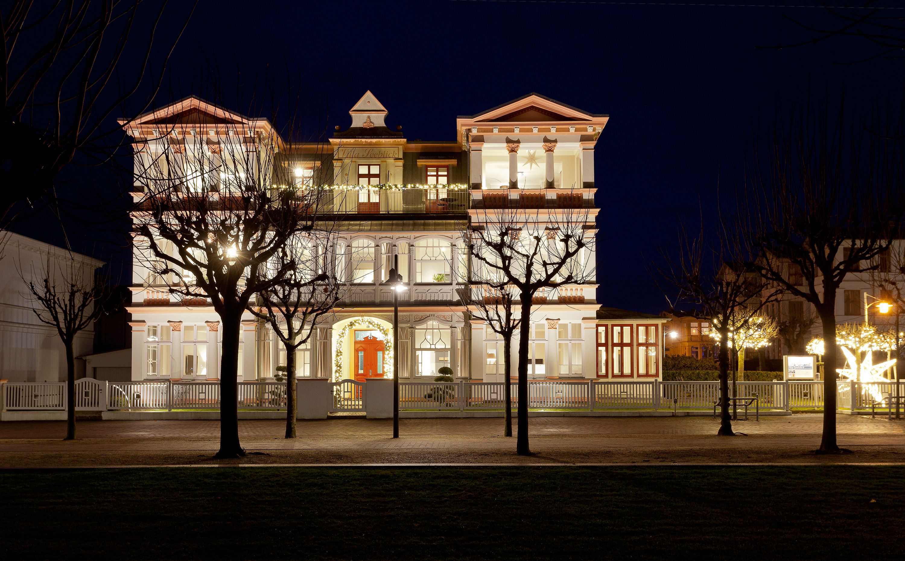 Direkt an der Strandpromenade und nahe der Landungsbrücke liegt die umfangreich renovierte (2020 / 2021) und romantische Villa Seeblick mit ihren 9 Ferienwohnungen (55 m² bis 95 m² für 2 bis 5 Personen) mit überwiegendem direktem Blick auf die Ostsee. Zahlreiche kleine Boutiquen, Restaurants und Bäckereien befinden sich in direkter Umgebung.
