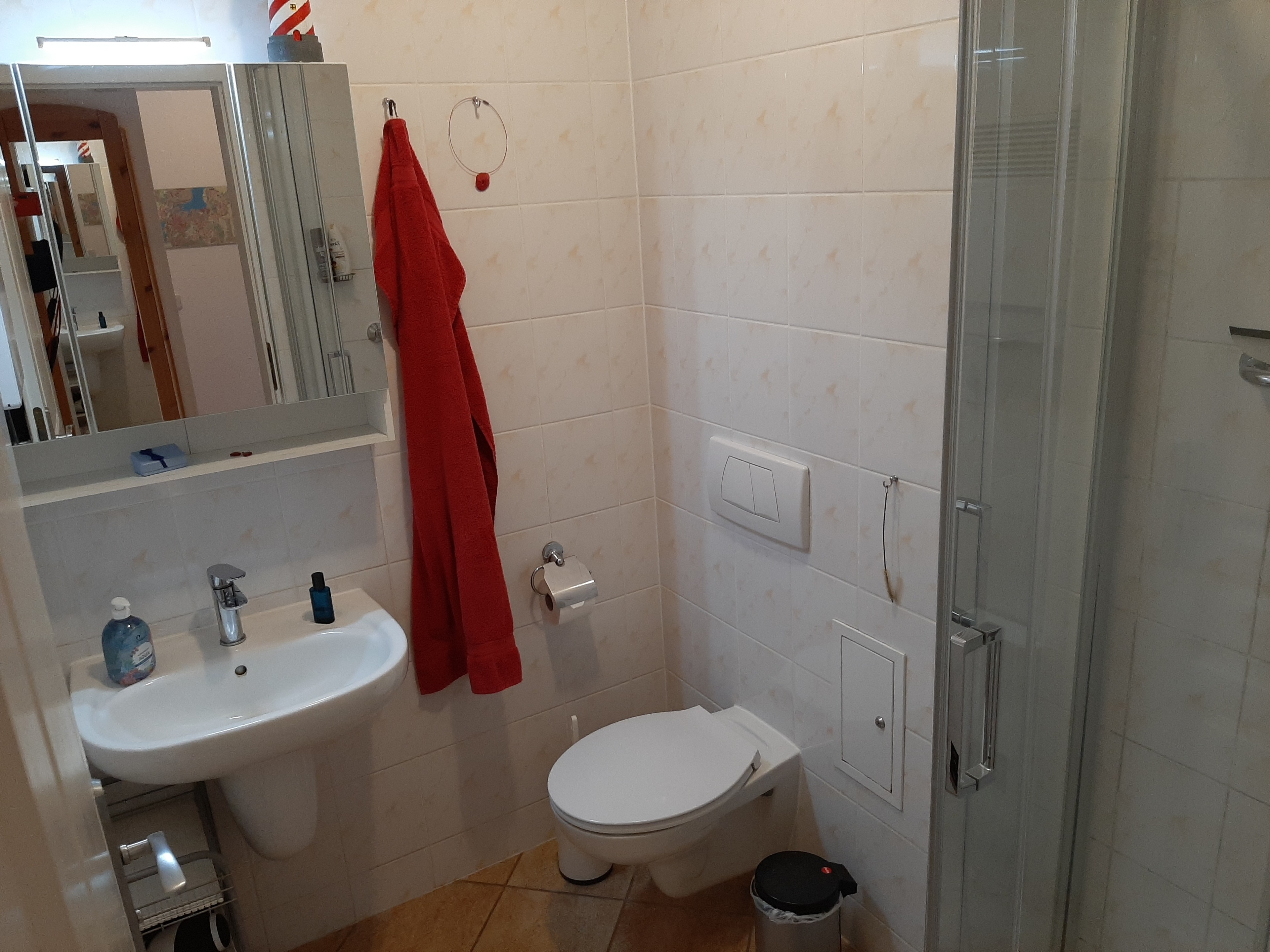 Außerdem sind natürlich ein Staubsauger, Türklingel, Garderobe, Ganzkörperspiegel im Flur, Sonnenschirm, Balkontisch mit Stühlen und 1 Liege und ein Wäscheständer für die Strandhandtücher vorhanden.