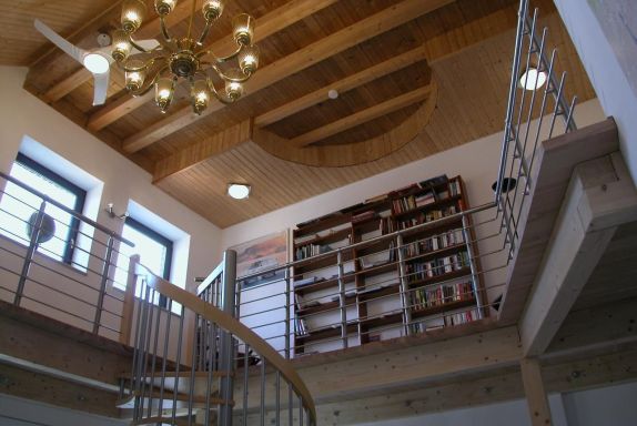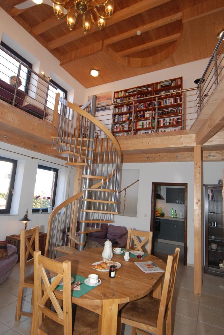 Wir bieten für Ihren Urlaub in Heiligenhafen eine höherwertige Gesamtgestaltung mit gehobenem Komfort, Großzügigkeit und ein besonderes Ambiente. Ansprechende Ferienwohnungen mit einem aufeinander abgestimmten Gesamteindruck. In jedem Raum einzeln regulierbar Fußbodenheizung, die Möbel sind in Hartholz und vermitteln ein exklusives Wohlgefühl. Das großzügige Wohnzimmer mit 33 qm Wohnfläche ist ausgestattet mit Ledergarnitur, Flachbild, DVD, Safe, Stereoanlage. iPhone/ iPod-Dock, wohnen zum Wohlfühlen und Relaxen. Durch den Essraum, offen bis in den Dachgiebel, führt eine Holzwendeltreppe in die Empore mit Bibliothek und einem Super-Panoramablick über die Dächer von Heiligenhafen auf die Ostsee, den Hafen, die Insel Fehmarn mit Fehmarnsundbrücke. Dort können Sie sich zum Lesen auf einen bequemen Ledersessel zurückziehen.