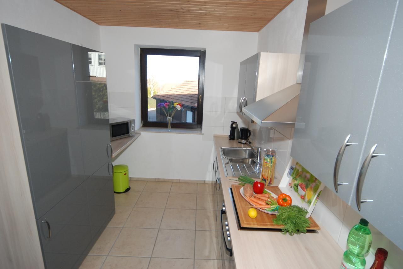 Die großzügige separate komplett eingerichtete Küche mit Backofen, Ceranfeld, Geschirrspüler, Kaffee-/-padmaschine und diversen Kleingeräten (Wasserkocher, Toaster, Mikrowelle usw) lädt zum gemeinsamen Kochen ein. Das großzügige Schlafzimmer mit Doppelbett ist mit massiven Holzmöbeln ausgestattet. Ein modernes geräumiges komfortables Badezimmer mit Dusche runden das Bild ab. Im Wirtschaftsraum finden Sie Waschmaschine, Trockner- und Bügelmöglichkeit und zusätzlich ein Gefrierschrank, außerhalb einen überdachten Trockenplatz mit Wäschespinne. Für einen schönen Urlaubsstart erwartet Sie ein Blumenstrauß und eine Flasche Sekt. Wir nehmen Sie persönlich vor der Haustür in Empfang, führen Sie durch Ihre Ferienwohnung mit Schlüsselübergabe und verabschieden Sie auch nach Ihrem Urlaub.
