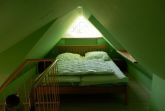 Im Inneren erwartet Sie eine voll ausgestattete Küchenzeile, die mit Kühlschrank, Gefrierfach, Backofen, Herd, Kaffeemaschine, Toaster und Wasserkocher keine Wünsche offenlässt. Das gemütliche Schlafzimmer mit einem Doppelbett der Größe 1,80m x 2,00m garantiert ruhige Nächte. Für zusätzliche Gäste bietet der offene Schlafbereich im Spitzboden ein weiteres Doppelbett der Größe 1,60m x 2,00m. Ein komfortabler Wohnbereich mit Sitz- und Essgelegenheit sowie Sat.-TV, Radio und CD-Player rundet das Angebot ab, ideal für gemütliche Abendstunden.