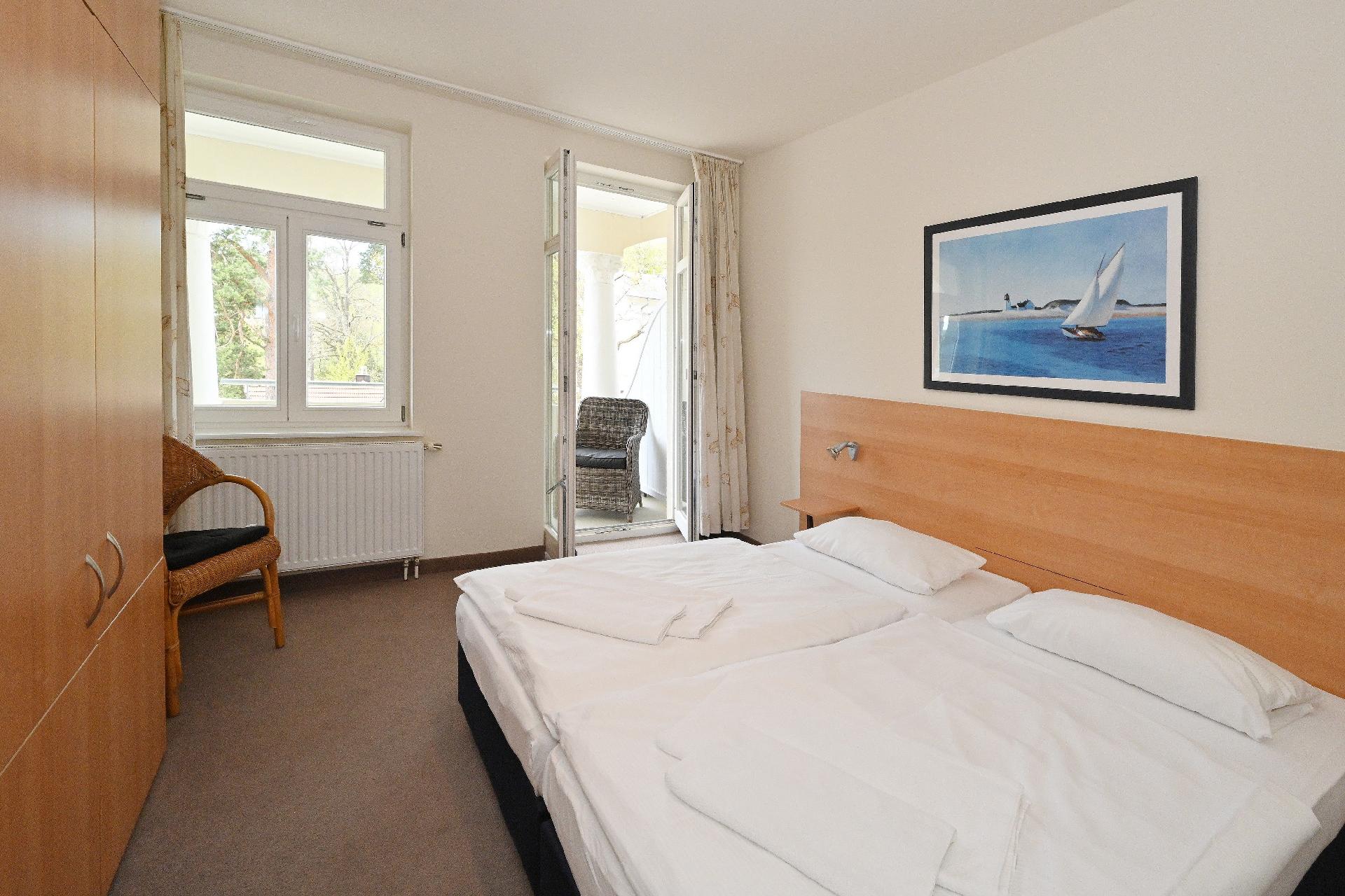 Sie bietet zwei Schlafzimmer, eine offene Küche mit Wohnbereich, ein Badezimmer und einen Balkon. Das Doppelbett ist 1,80m x 2,00m groß, das zweite Schlafzimmer verfügt über zwei Einzelbetten a 0,90m x 2,00m. Die fünfte und sechste Person findet auf der Doppelschlafcouch im Wohnbereich Platz. Die voll ausgestattete Küchenzeile verfügt nicht nur über einen Backofen, Herd und Kühlschrank, sondern auch über einen Toaster, Wasserkocher und eine Spülmaschine. So ist der Abwasch leicht gemacht. Das Bad ist mit Badewanne, WC, Föhn und Waschbecken ausgestattet. Kinderbett und Kinderstuhl können kostenlos auf Anfrage hinzugestellt werden. Kostenloses WLAN darf natürlich nicht fehlen.