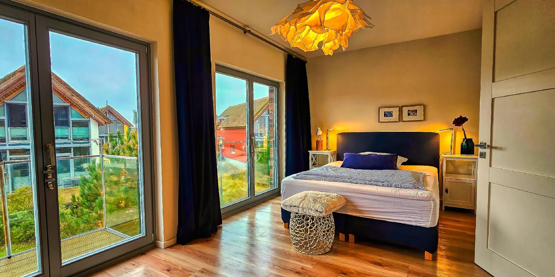 Die 108 m² große exklusiv ausgestattete Maisonette - Ferienwohnung ist eingerahmt von Ostsee, Binnensee und Yachthafen. Nur 200 Meter entfernt befinden sich die Erlebnis-Seebrücke, der kilometerlange feinsandige Ostseestrand und das unmittelbar angrenzende Naturschutzgebiet Graswarder. Nur wenige Schritte sind es zum 5-Sterne-Yachthafen, zum Fischereihafen oder bis zum Stadtzentrum von Heiligenhafen, dass mit einer bunten Mischung aus attraktiven Einkaufsmöglichkeiten, Restaurants und Cafés aufwarten kann.