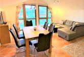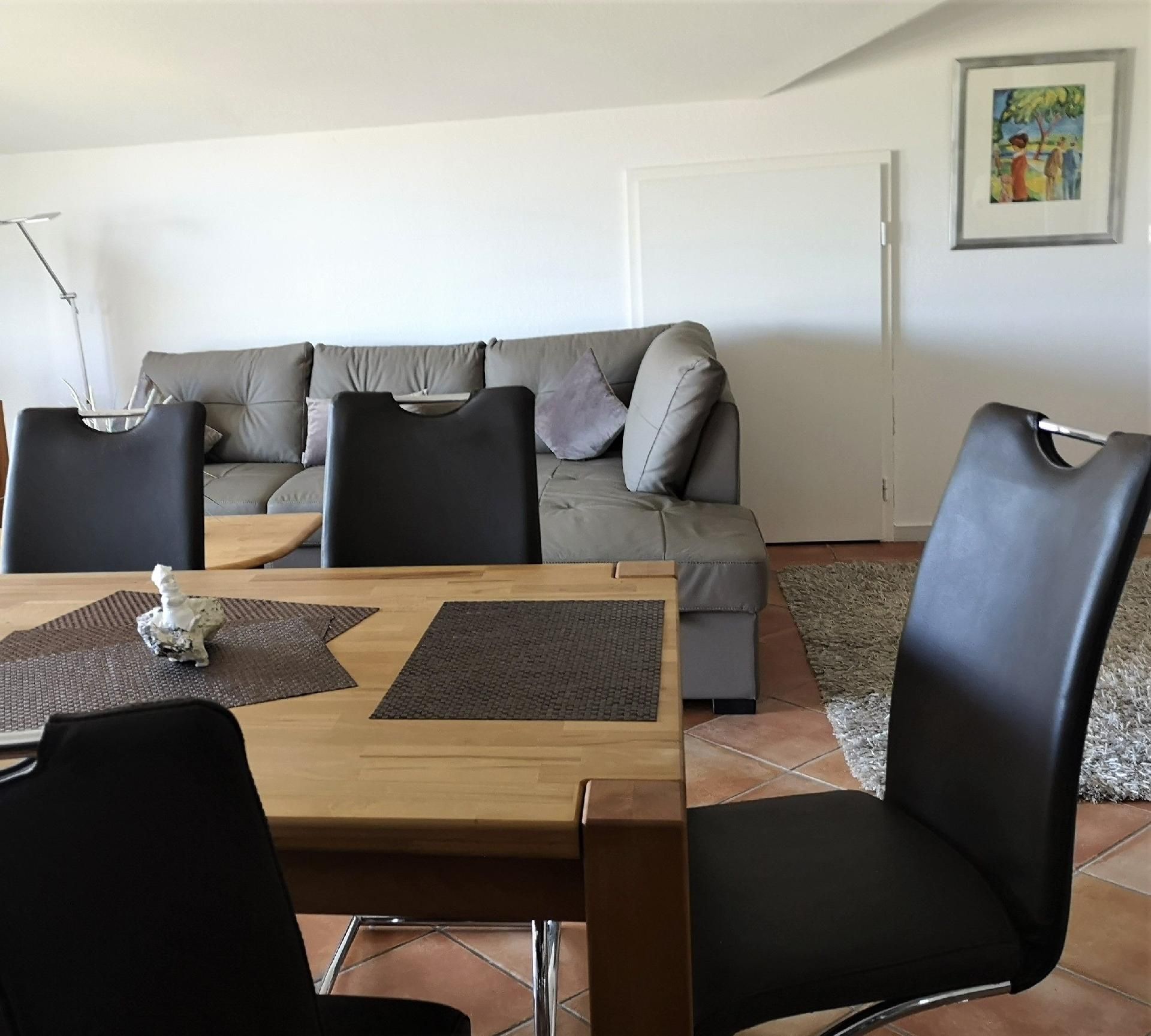 Die Wohnung bietet Platz für bis max. 3 Erwachsene und 2 Kinder, ist hell und hat eine Größe von 66 m². Die Ausstattung ist komfortabel mit einer Sitzgarnitur mit Schlaffunktion, einem Essbereich, Flachbildschirm-Fernseher. Die Küche ist ausgestattet mit Geschirrspüler, Mikrowelle, Cerankochfeld mit vier-Platten und Kühlschrank mit Gefrierfach. Im Schlafzimmer gibt es ein Doppelbett und ein Etagenbett. Die Einrichtung ist modern und in hellen, freundlichen Farben gestaltet. WLAN vorhanden.