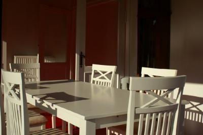 Das Appartement mit seinen ca. 120 qm ist für bis zu 4 Personen vorgesehen, es beinhaltet 1 Schlafzimmer mit französischem Bett (1,4 x 2 Meter), SAT-TV, 1 Schlafzimmer mit einem großen Doppelbett (zwei Matratzen 90x200), SAT-TV, 1 Wohnzimmer mit SAT-TV , 1 Esszimmer (Wintergarten mit Gartenblick), 1 Bad mit Badewanne/Dusche, WC und Bidet, eine voll ausgestattete Küche (Herd mit Backofen, Spülmaschine, Kühlschrank) und einen Flur mit einer kleinen Gemäldegalerie und Sitzmöbeln.