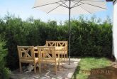 Der Außenbereich entführt in einen großen Garten mit vielfältigen Sitzgelegenheiten, die zum Entspannen, Grillen oder einem Glas Wein in einem der Strandkörbe einladen. Die Wohnung selbst verfügt über eine eigene Terrasse, die privaten Freiraum im Grünen verspricht. Hier können Sie die Seele baumeln lassen und die ruhige Atmosphäre genießen.