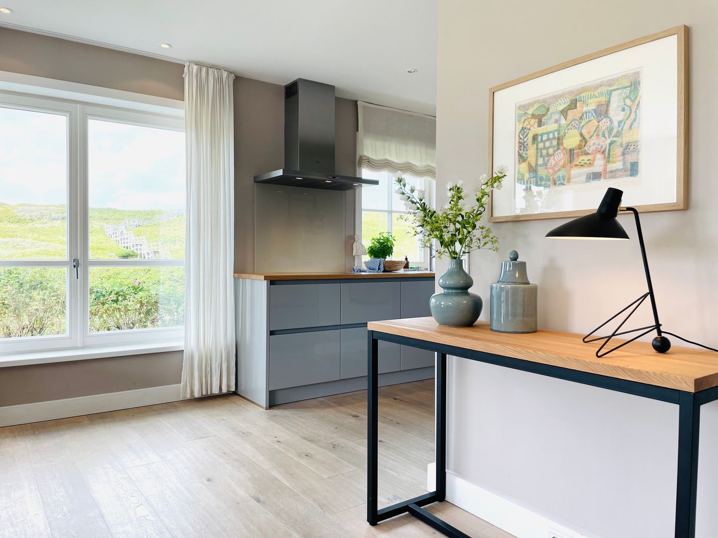 Das Haus haben wir 2014 gebaut und mit viel Liebe zum Detail eingerichtet. Den Einrichtungsstil nennen wir amerikanisches Landhaus, weil er uns an schöne Sommer in den Hamptons oder auf Martha's Vineyard erinnert. Und ganz hervorragend als moderne Variante des Friesenhauses taugt - mit heller Einrichtung, aber eben auch mit Friesenwall und Strandkorb.