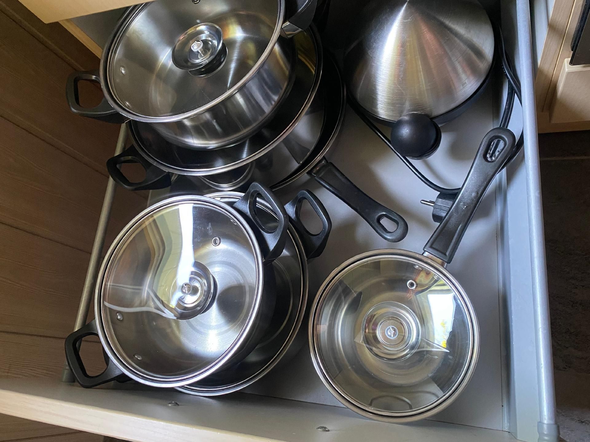 Kochen: Backofen; Herd; Kaffeemaschine; Kaffeemaschine; Kühlschrank; Mikrowelle; Spülmaschine; Toaster; Wasserkocher
