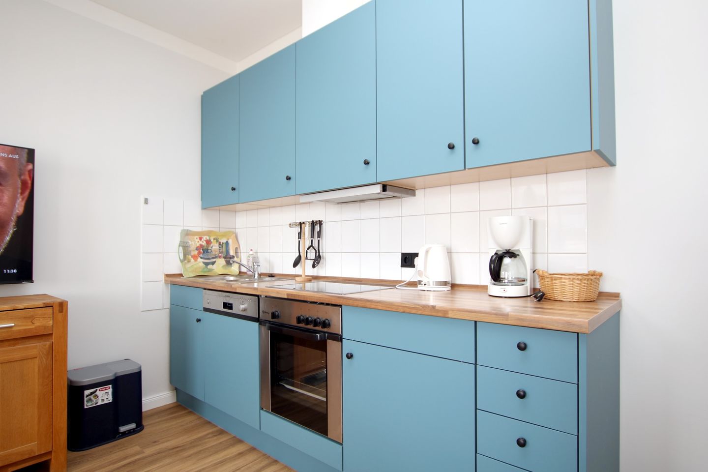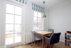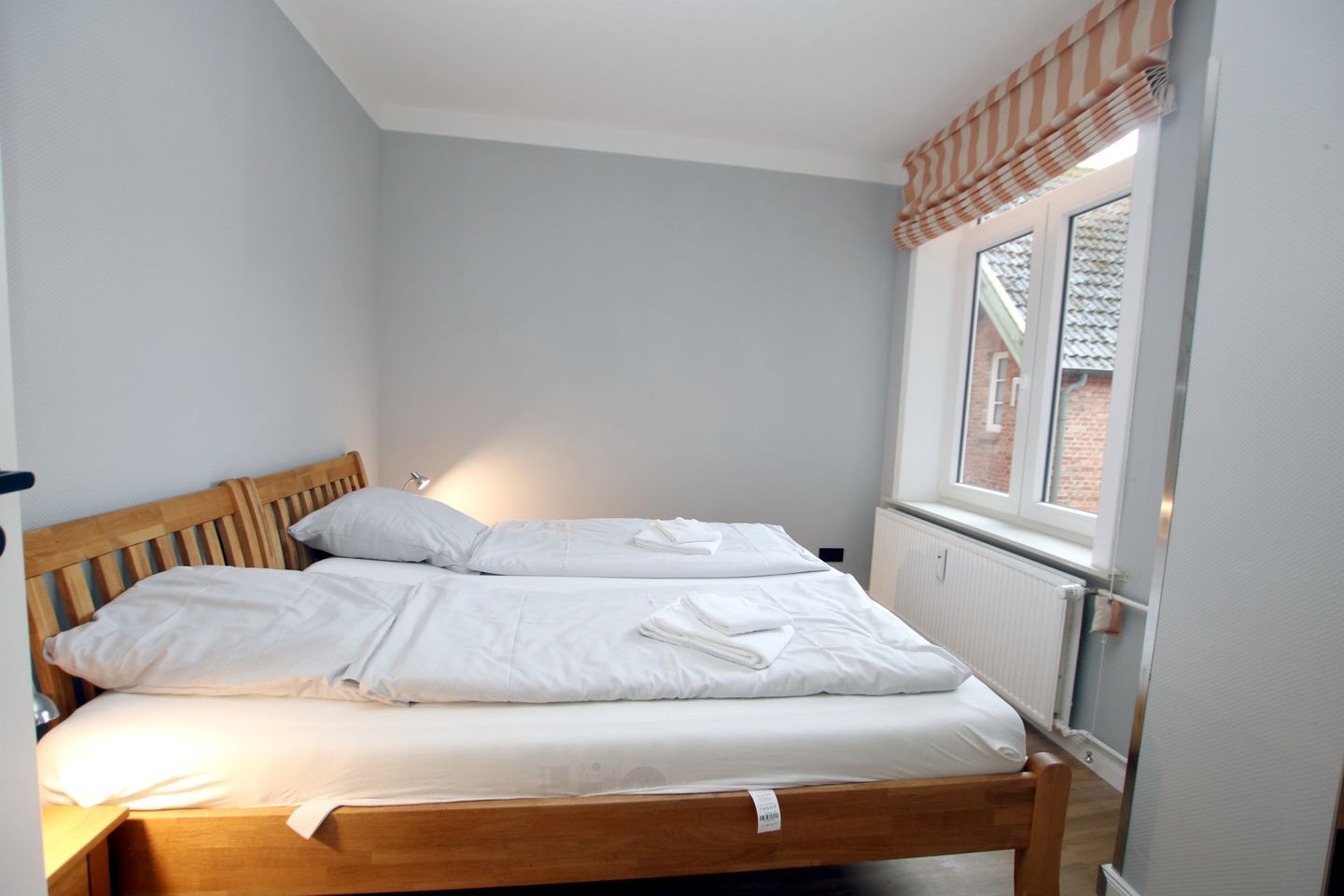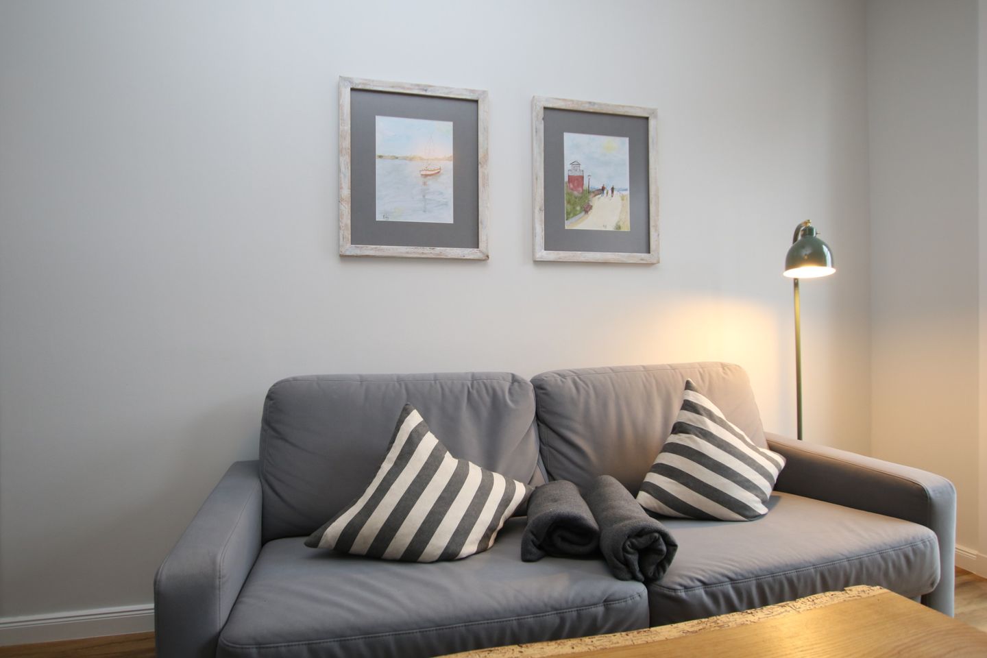 Ferienwohnung in Wyk auf Föhr, Sandwall 14, Wohnung 4 (ca. 40qm) mit Meerblick. 2-Zimmer-Nichtraucherwohnung in der 1 Etage mit Ostbalkon und Meerblick. WOHNZIMMER: Doppelcouch, Kommode, Esstisch mit 3 Stühlen und KÜCHENZEILE. SCHLAFZIMMER: 2 Einzelbetten ( 0,90 X 2m) die zusammen stehen und ein Kleiderschrank. BAD mit Dusche/WC. Zentral aber doch ruhig in der Fußgängerzone. W-Lan steht zur Verfügung. Zum Strand sind es nur ein paar Meter. Wohnung ist mit Vinylboden ausgelegt und es sind keine Haustiere erlaubt. Kein Parkplatz an der Wohnung. Fahrräder können hinten im Hof abgestellt werden. Sehr gemütliche Wohnung mit Meerblick im Zentrum von Wyk.