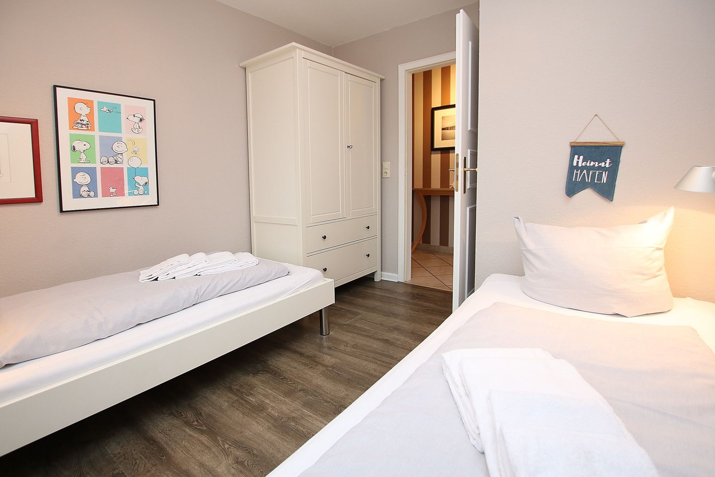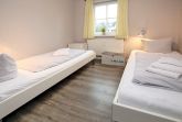 3-Zimmer-Nichtraucherwohnung mit ca.60 qm im Erdgeschoß mit Südwestterrasse. WOHNZIMMER mit einem Dreisitzer-Sofa mit Ottomane, 1 Sessel und Couchtisch. KÜCHENZEILE mit Esstisch und 4 Stühlen. FLUR mit Garderobe und kleinem Einbauschrank. Diese Räume sind alle mit Fliesen ausgelegt. SCHLAFZIMMER 1 mit zwei getrennt stehenden Betten (0,90 x 2 m) und Kommode. SCHLAFZIMMER 2 mit Doppelbett (1,80 x 2 m) und Kleiderschrank. BAD mit Dusche und WC. Zum Zentrum sind es nur wenige Gehminuten, zum Hauptstrand ca. 300 m, zum Kurmittelhaus und Erlebnisbad ca. 700 m. TERRASSE: großzügig mit Gartenmöbeln, Strandkorb. LAGE: direkt im Zentrum, aber trotzdem sehr ruhig in zweiter Reihe. Waschmaschine und Trockner auf Münzbasis im Gemeinschaftskeller.