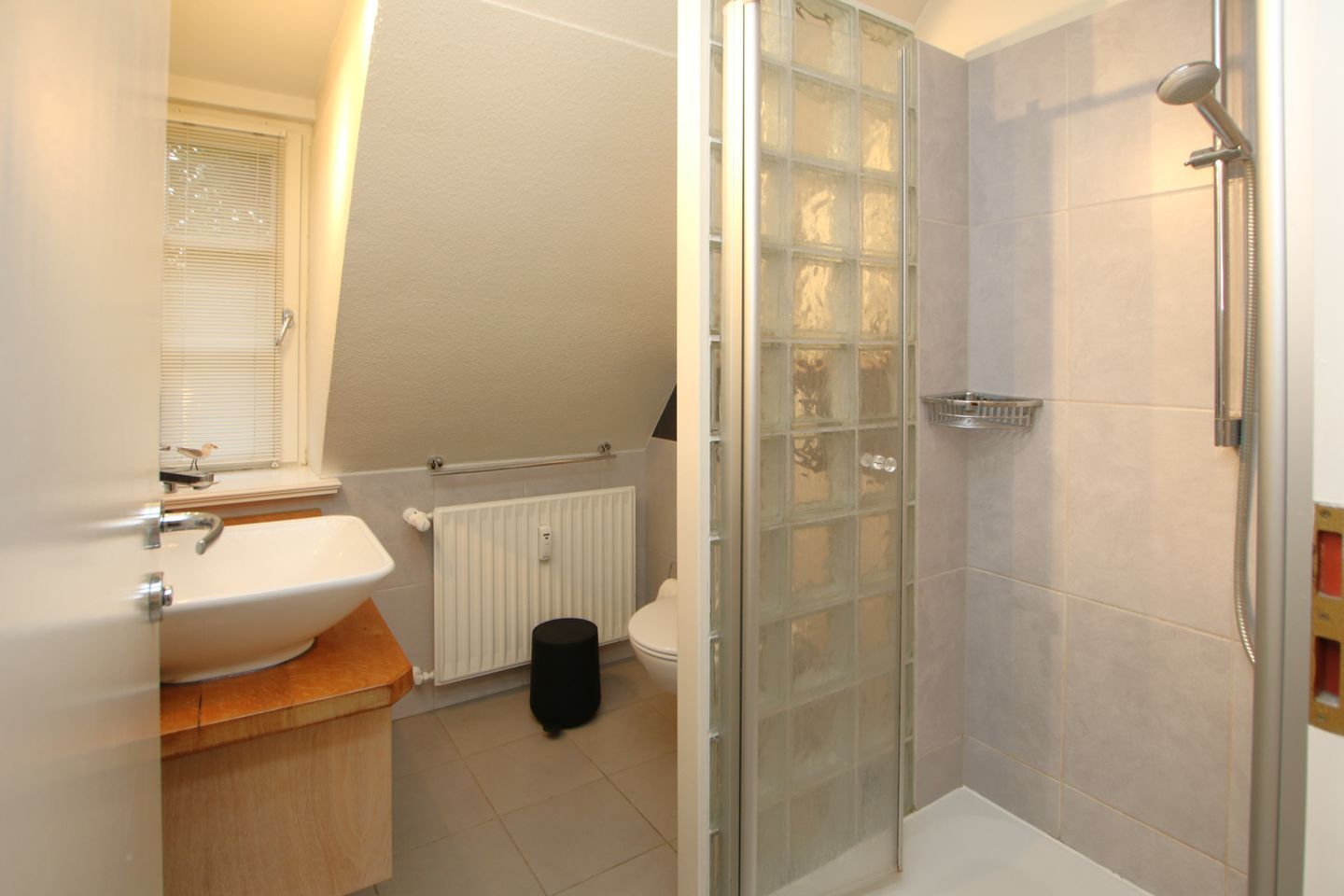 BAD: Dusche/WC. Vom Flur führt eine offene Treppe ins Dachgeschoss, dort stehen 2 Einzelbetten und ein Einbauschrank zur Verfügung.