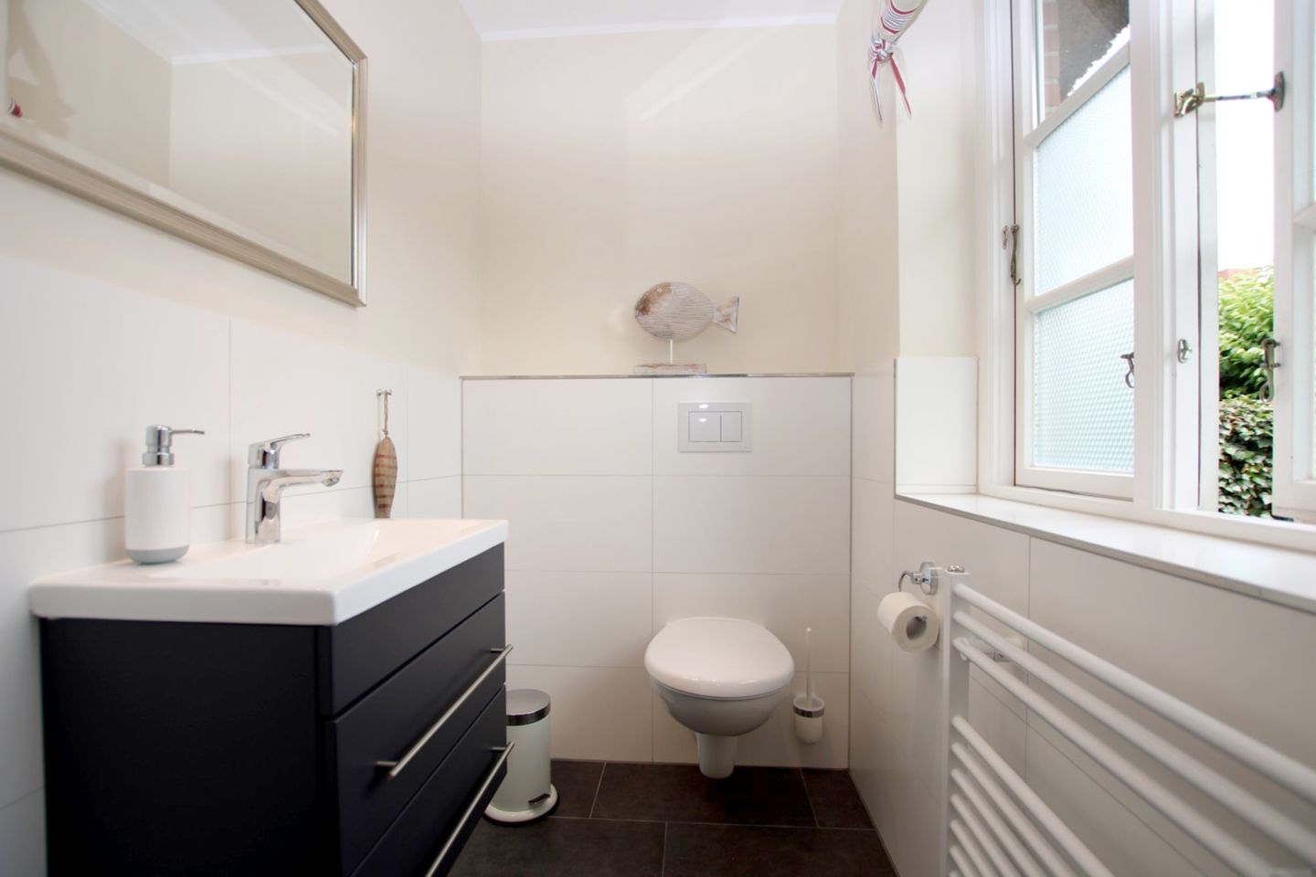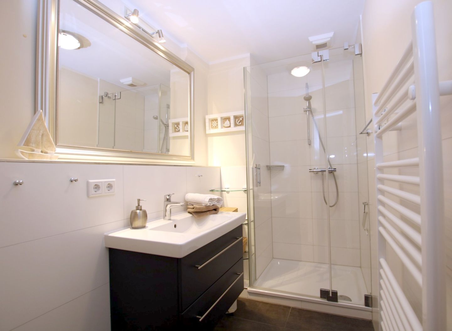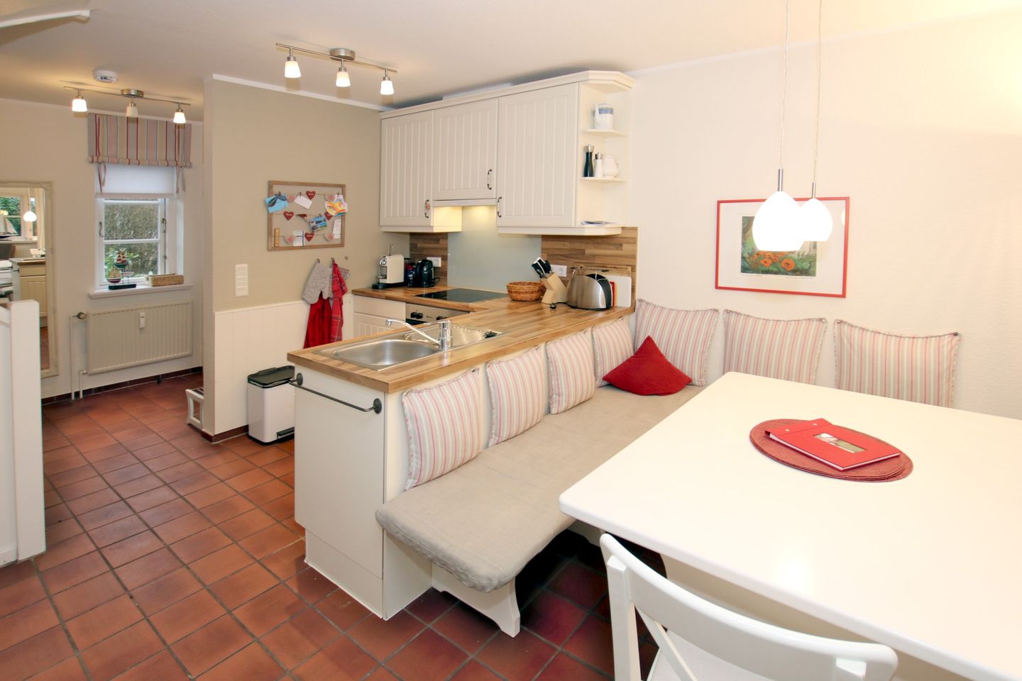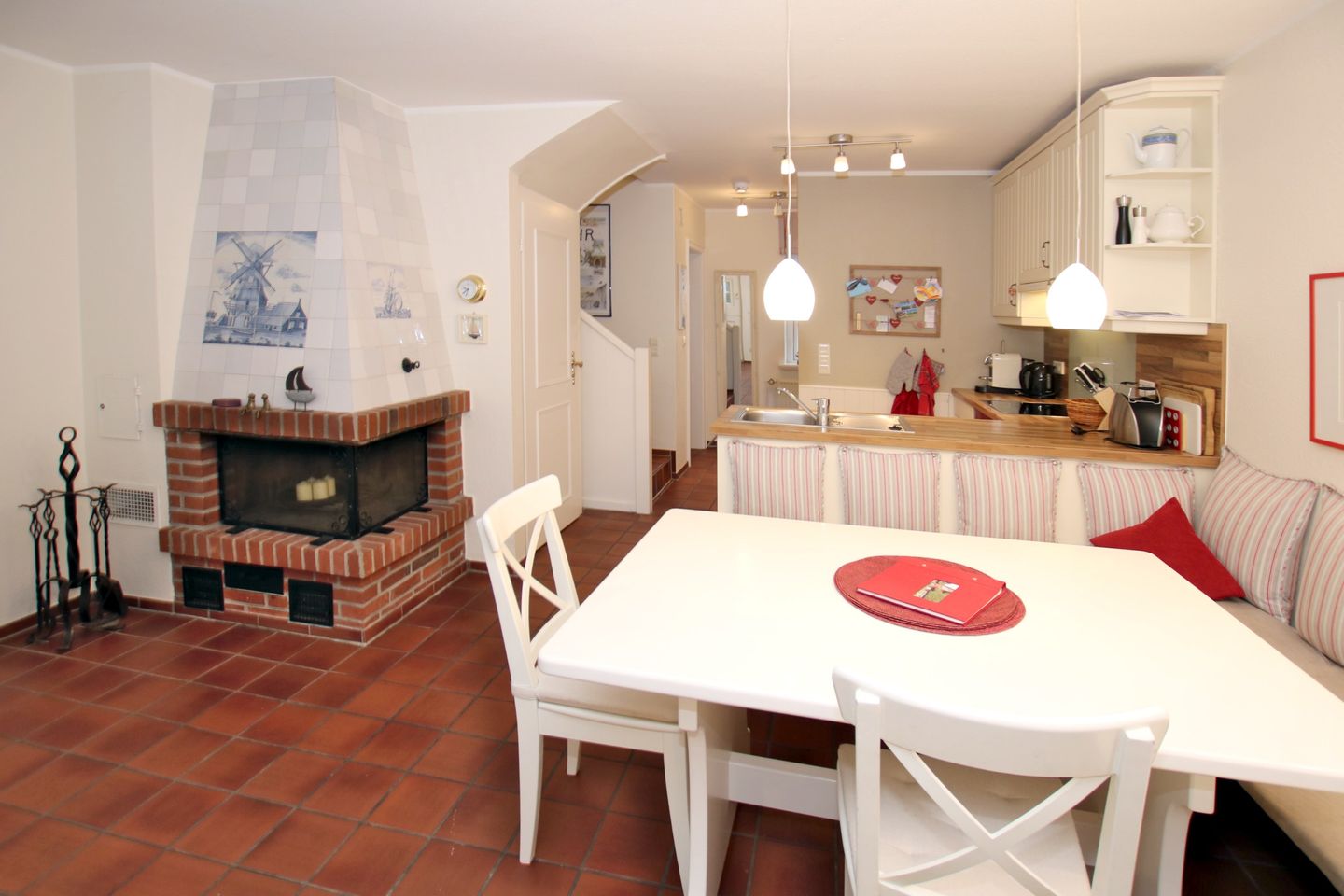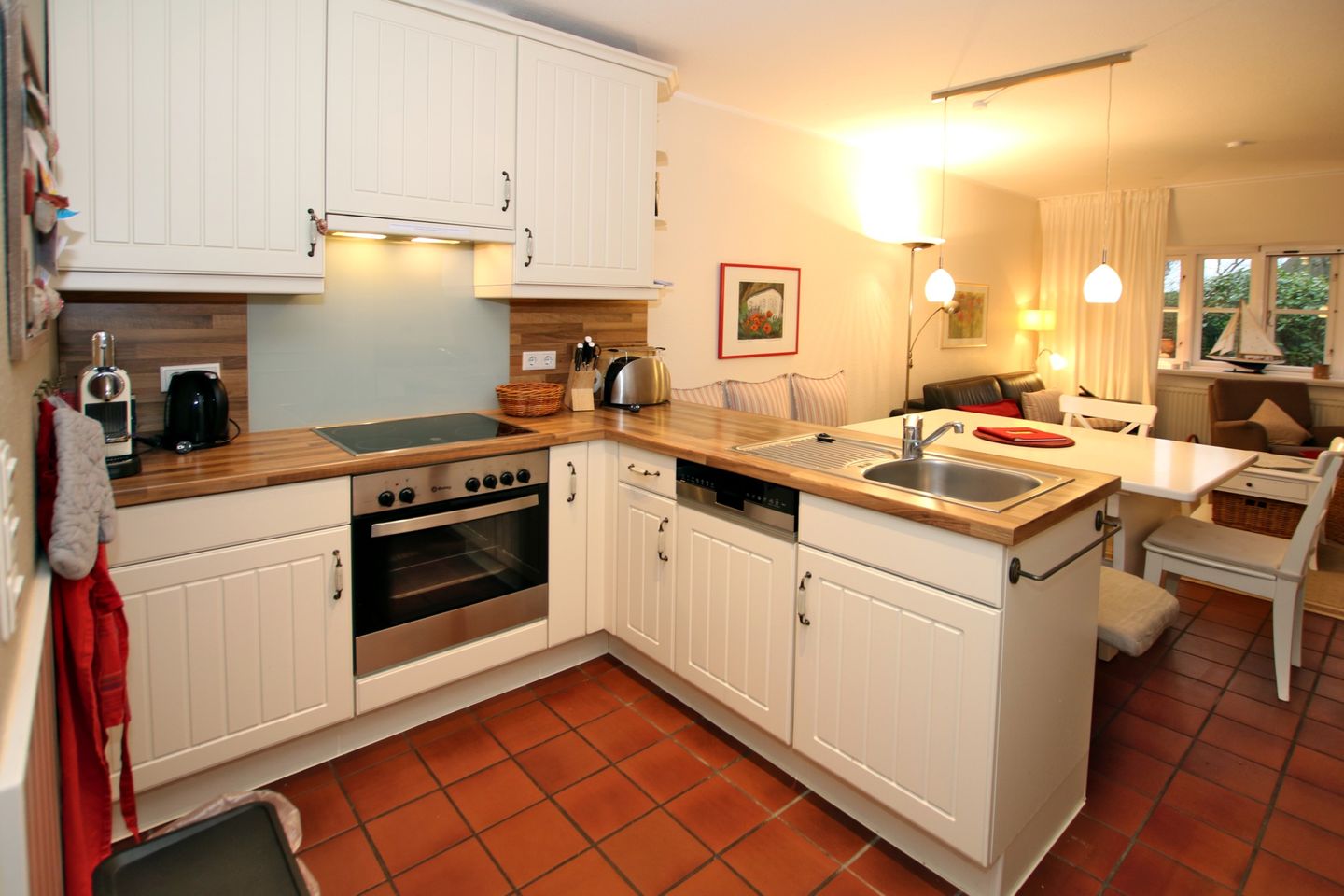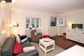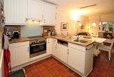 Gemütliche und komfortable Ferienwohnung in Wrixum mit 3 Zimmern im Reetdachhaus - Nichtraucher - sehr schönes Wohnzimmer mit 2er Ledercoach mit Schlaffunktion, 1 Sessel mit Hocker, Kamin, Flatscreen-TV, Radio, Telefon, Terrassenzugang - Offener Küchenbereich: Vollausgestattete Küche mit Essplatz für 5 Personen - Schlafzimmer 1 mit Doppelbett (180 cm breit) und zwei Kleiderschränken - Bad en Suite mit Dusche/WC (2018 komplett neu) - Schlafzimmer 2 mit Einzelbett, kleinem Schreibtisch und Flatscreen -TV, Telefon – Gäste WC im EG, (2018 komplett neu) W-LAN, Kinderreisebett, Kinderhochstuhl, 1 Haustier auf Anfrage und gegen Gebühr, weitere ausschließlich auf Anfrage - gemütliche Terrasse mit Terrassenmöbel und Garten - Waschmaschine und Trockner zur gemeinschaftlichen Nutzung auf Münzbasis. - eigener Parkplatz am Haus -eine E-Ladestation für 2 Autos befindet sich in ca. 100 m entfernt an der Marsch - zum Zentrum von Wyk sind es 2 Kilometer, zum Strand 2 bis 3 Kilometer, Bäcker in unmittelbarer Nachbarschaft