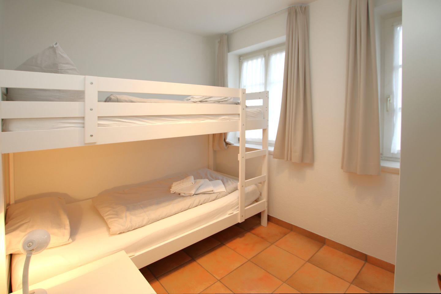 Doppelbett (1,60 x 2m) mit Kleiderschrank. SCHLAFZIMMER 2 mit Etagenbett (0,90 x 2m), Kleiderschrank und Klapptisch. BAD mit Dusche und WC. TERRASSE: mit Strandkorb. Im KELLER stehen allen Gästen SCHWIMMBAD und SAUNA zur Verfügung. Fahrradständer am Haus. LAGE: Marschnähe und dörflich. Bushaltestelle im Dorf. Zum Zentrum von Wyk, Strand, Kurmittelhaus und Wellenbad sind es ca. 20 - 30 Minuten Fußweg. Münzwaschmaschine und