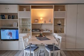 Für Ihr Wohlbefinden sorgen hochwertige Ausstattungen, wie eine vollständig eingerichtete, geschlossene Küche mit Geschirrspüler, Herd, Kühlschrank und Mikrowelle – hier können Sie Ihre kulinarischen Lieblingsgerichte zubereiten und diese an einem gemütlichen Esstisch genießen. Der großzügige Balkon lädt dazu ein, bei einem Glas Wein den Abend ausklingen zu lassen oder den Tag mit einer Tasse Kaffee zu beginnen. Durch die ruhige Lage der Wohnung können Sie die frische Meeresbrise und den Klang der Wellen genießen.