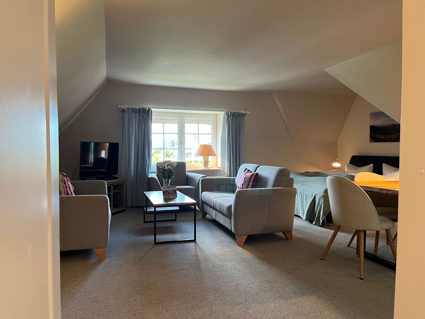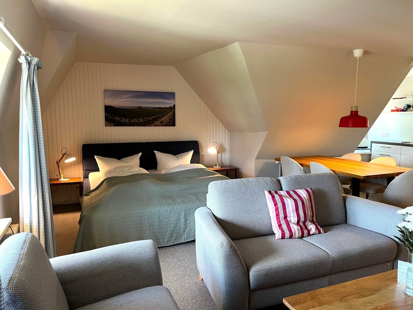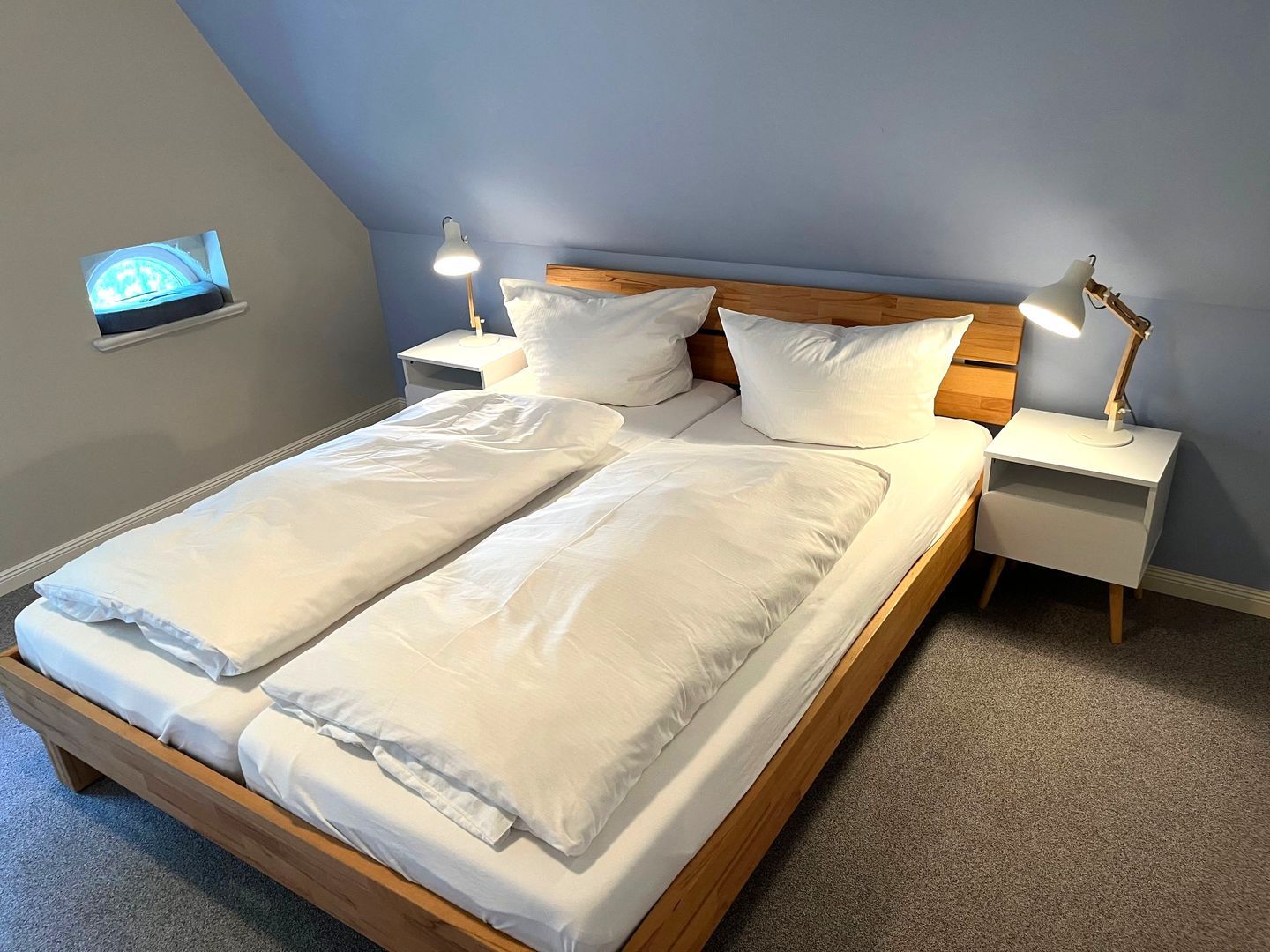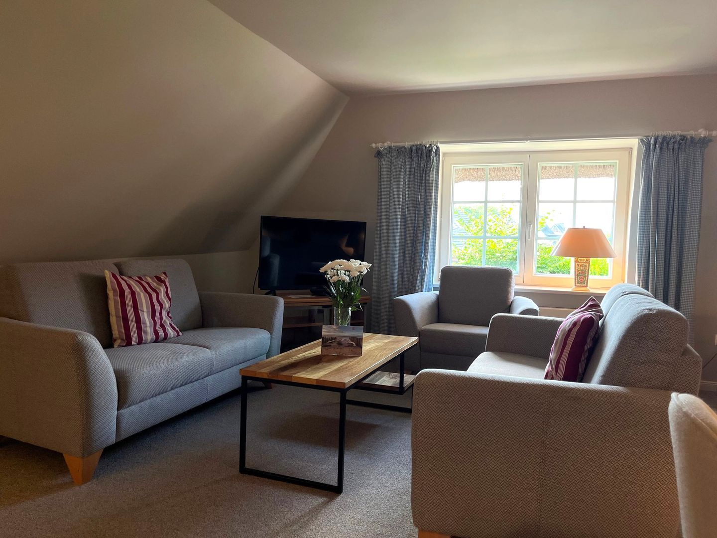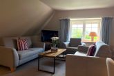 Das großzügige, Anfang 2021 renovierte Appartement Unterm Reet befindet sich im Obergeschoss des Hauses und erstreckt sich über ca. 100 qm. Neben dem großzügigen Wohn-Essbereich (ca. 30 qm) bietet die Wohnung eine Wohndiele mit Arbeitsplatz, sowie 2 Schlafzimmer mit Doppelbett. Im Wohnraum steht noch ein weiteres großes Doppelbett in einer Nische. Alle Zimmer sind liebevoll und hell gestaltet, sodass einem entspannten Urlaub nichts mehr im Wege stehen sollte. In allen Räumen ist ein schnelles WLAN verfügbar.
