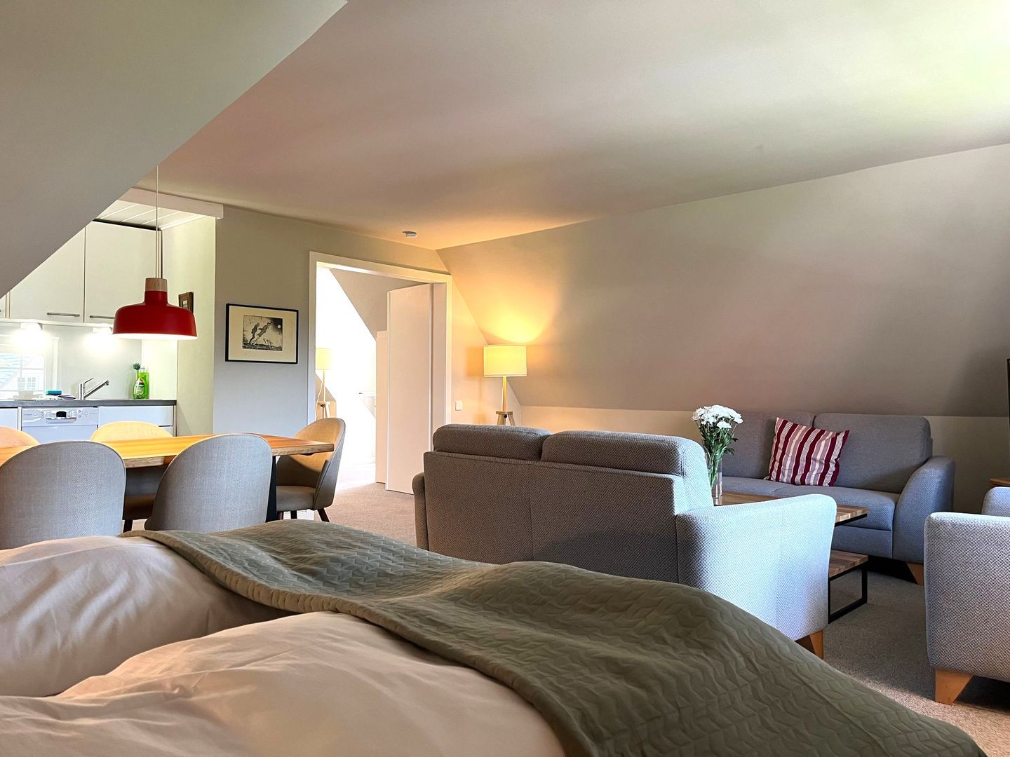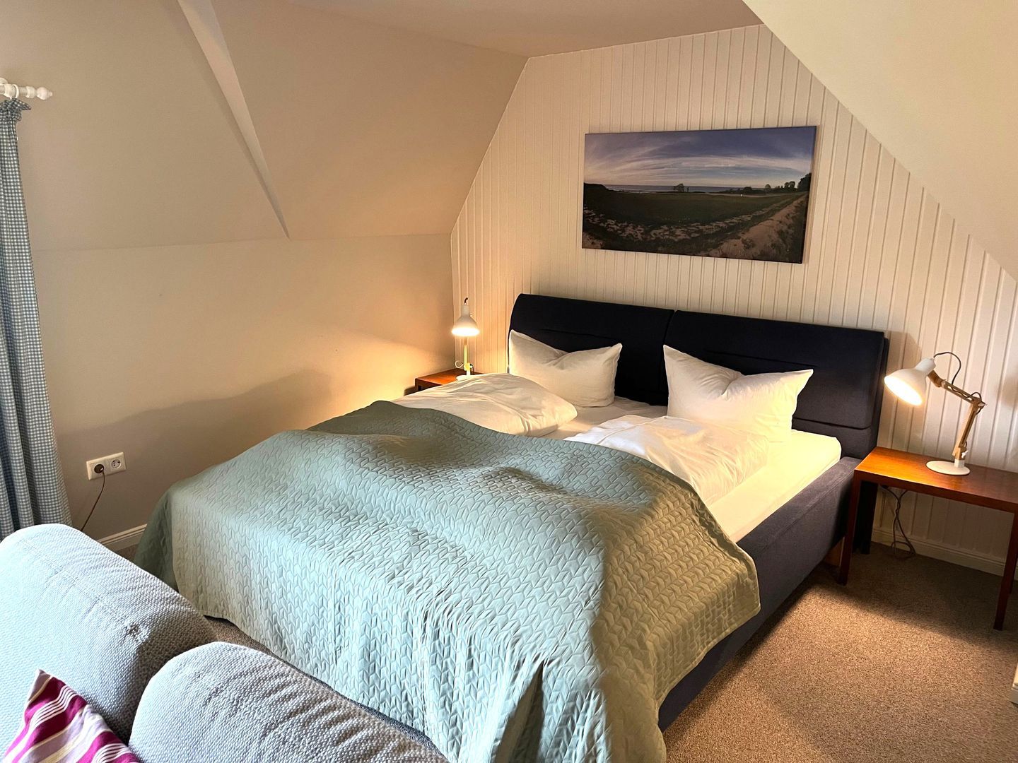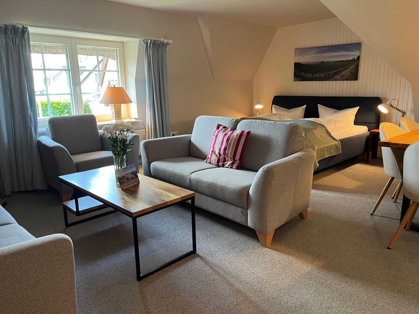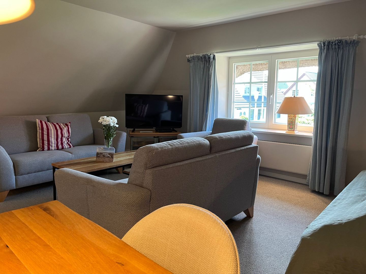 Das großzügige, Anfang 2021 renovierte Appartement Unterm Reet befindet sich im Obergeschoss des Hauses und erstreckt sich über ca. 100 qm. Neben dem großzügigen Wohn-Essbereich (ca. 30 qm) bietet die Wohnung eine Wohndiele mit Arbeitsplatz, sowie 2 Schlafzimmer mit Doppelbett. Im Wohnraum steht noch ein weiteres großes Doppelbett in einer Nische. Alle Zimmer sind liebevoll und hell gestaltet, sodass einem entspannten Urlaub nichts mehr im Wege stehen sollte. In allen Räumen ist ein schnelles WLAN verfügbar.