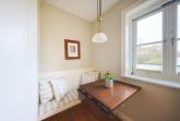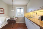 Das Wohnzimmer mit hochwertigen Tischlereinbauten, einer gemütlichen Sitzgruppe und einer Essecke besticht zusätzlich mit seinen alten, historischen Fliesen, welche die besondere Atmosphäre des Raumes ausmachen. Ein Smart-TV mit Bluray-Player und eine Dockingstation für iPod, iPhone oder iPad sorgen für modernen Komfort und zusätzliche Annehmlichkeit.