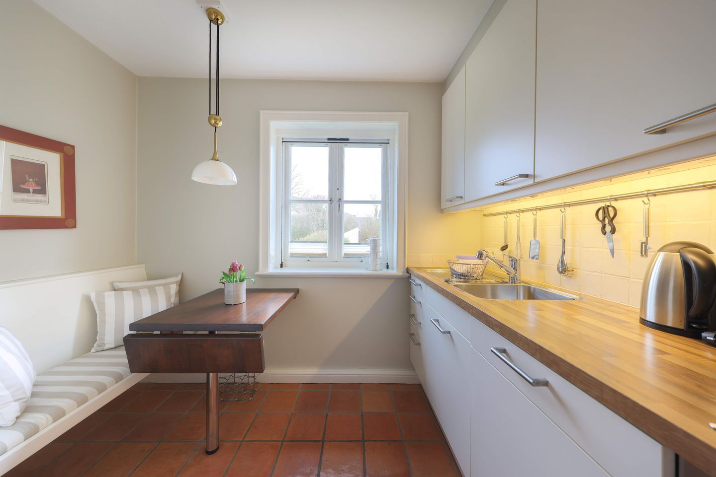 Die hochwertige Küche verfügt über eine umfangreiche Ausstattung. Neben einem Geschirrspüler, einem großen Kühlschrank, Herd und Mikrowelle und zahlreichen weiteren Küchengeräten (unter anderem ein Wasserkocher, Toaster sowie Eierkocher) stehen auch Geschirr und -Handtücher zur Verfügung. Zusätzlich besteht die Wahl zwischen einer Kapsel- und einer normalen Filterkaffeemaschine. Ein Waschtrockner ist ebenfalls vorhanden.