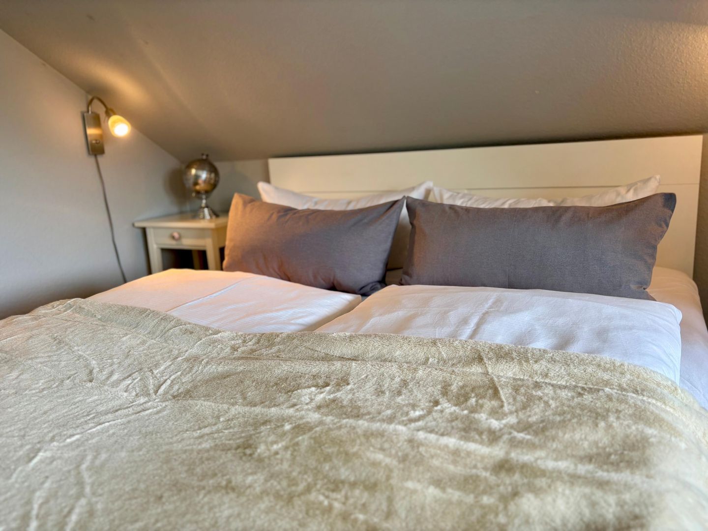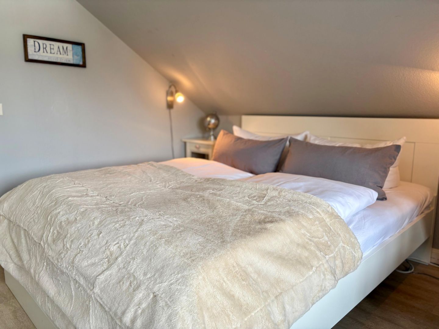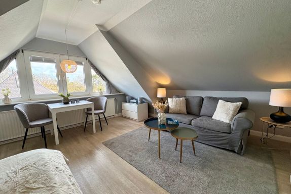Unser kleines Appartement befindet sich im ersten Stock unserer Doppelhaushälfte in einer sehr ruhig gelegenen Ringstrasse mit geringem Verkehrsaufkommen. Unsere kleine Siedlung grenzt unmittelbar an das Tinnumer Naturschutzgebiet Salzwiesen und ist somit ideal für Spaziergänger, Jogger und Radfahrer. Einem Spaziergang in den umliegenden Feld- und Wanderwegen, sowie zur Tinnum Burg (0,5 km) oder an den Strand (1,2 km) sollte also nichts im Wege stehen. Aber auch die Friedrichstrasse in der Innenstadt (2,5 km) ist in kurzer Zeit zu erreichen. Für weitere Fragen, steht Ihnen sehr gerne die Vermietung Appartements Eberhardt zur Verfügung.