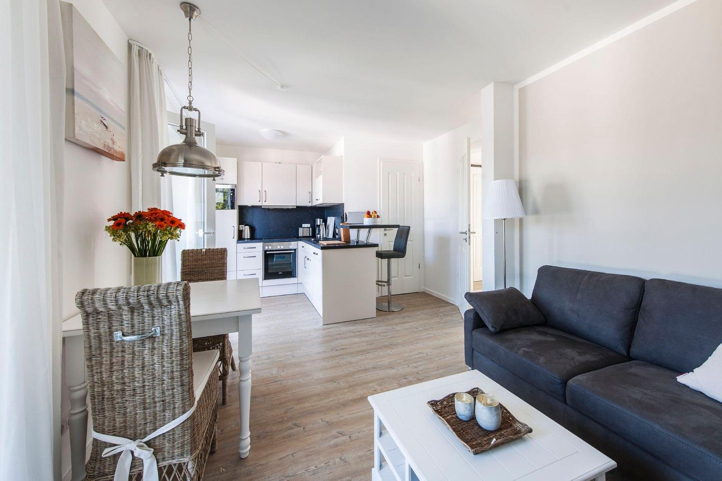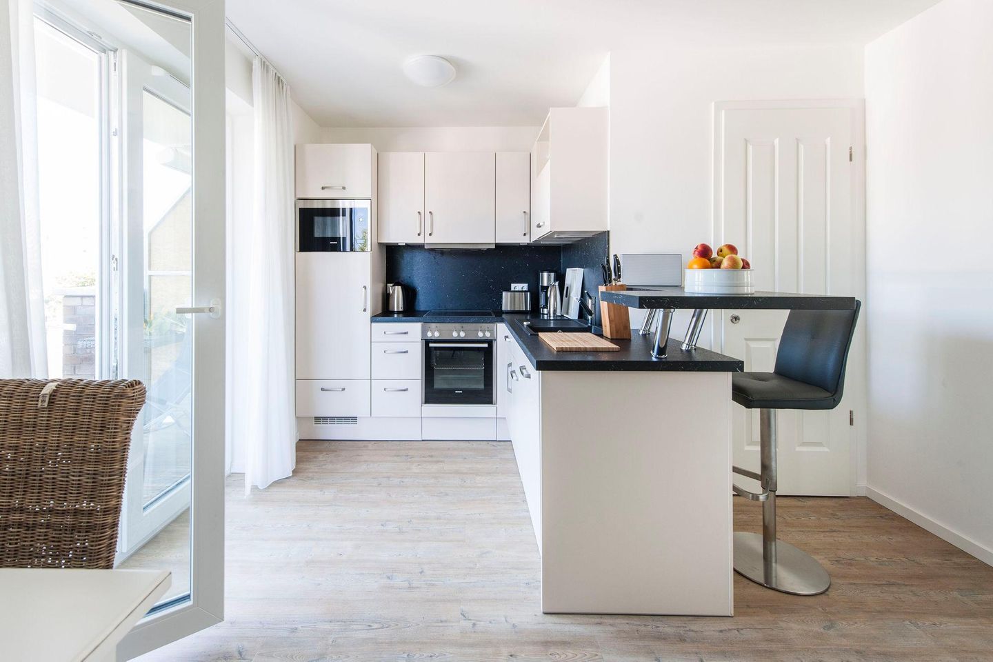 Die Ferienwohnung 3.3 ist eine mit viel Liebe eingerichtete und gemütliche 2-Raum-Wohnung mit Balkon. Die Küchenzeile und der Essbereich sind direkt im Wohnbereich integriert. Das Bad verfügt über eine ebenerdige Dusche, WC, Handtuchtrockner und Haar-Föhn. Vom Wohnbereich gelangen Sie direkt auf den Balkon.