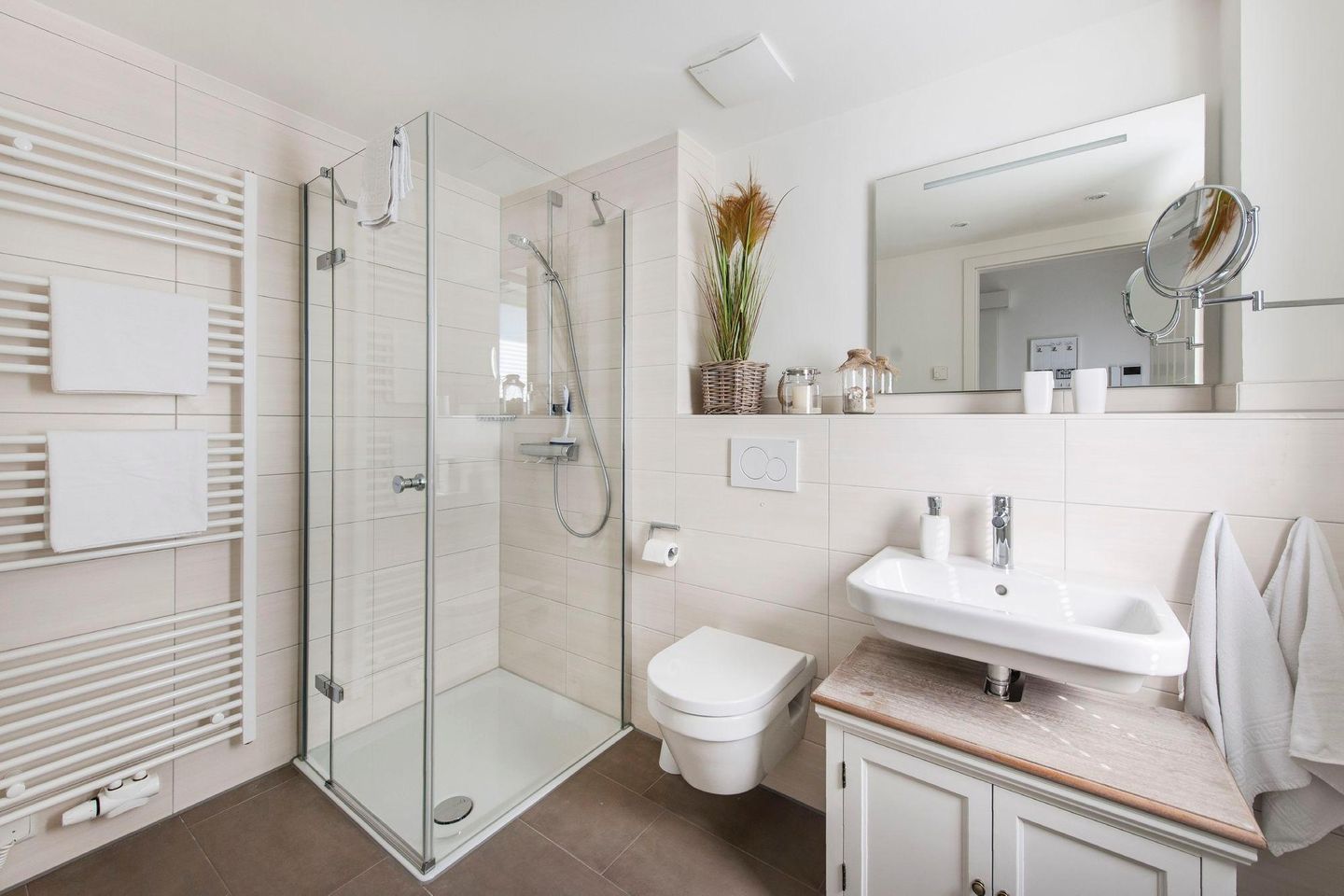 Sanitär: Duschbad mit ebenerdiger Dusche, Haar-Föhn, Kosmetikspiegel
